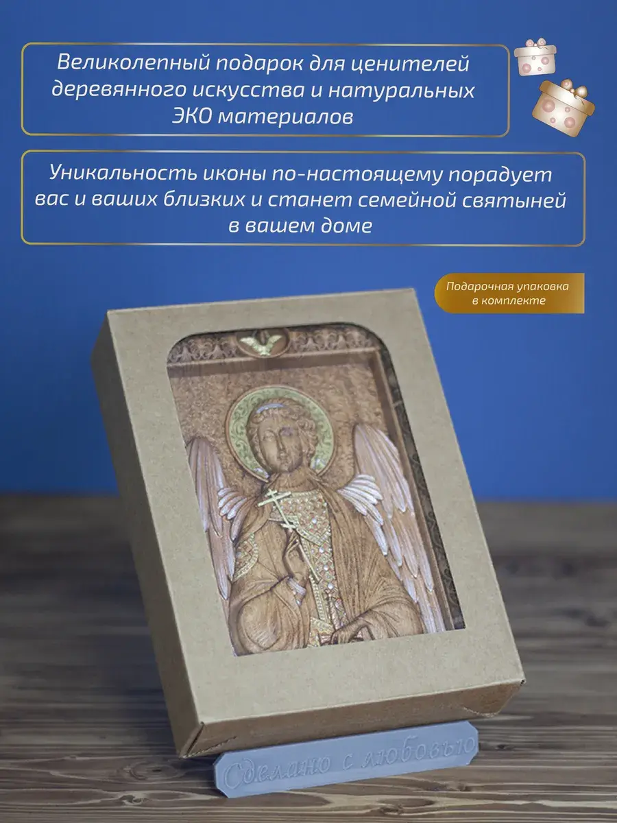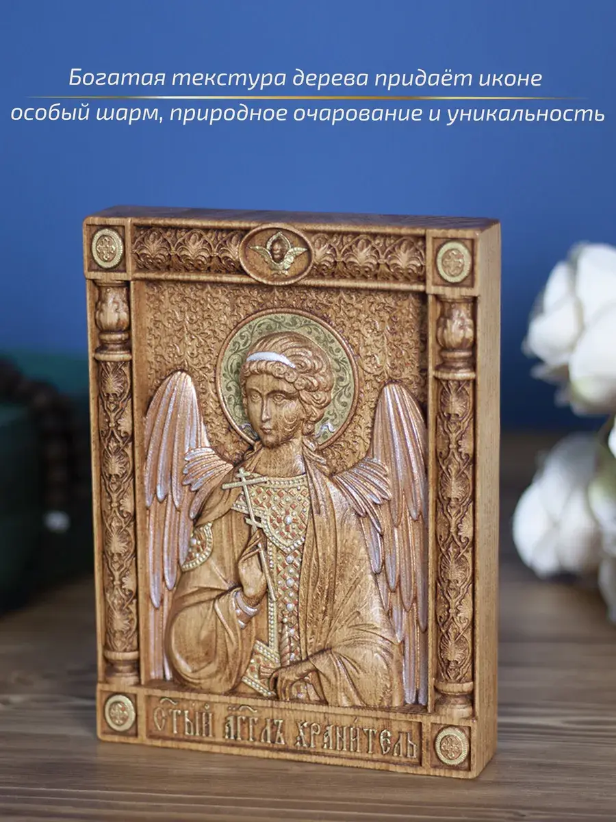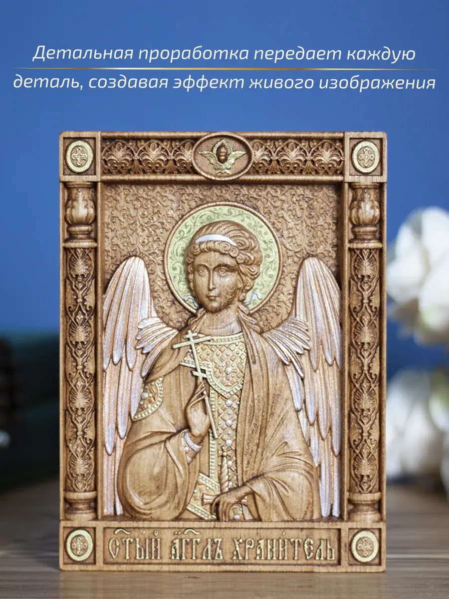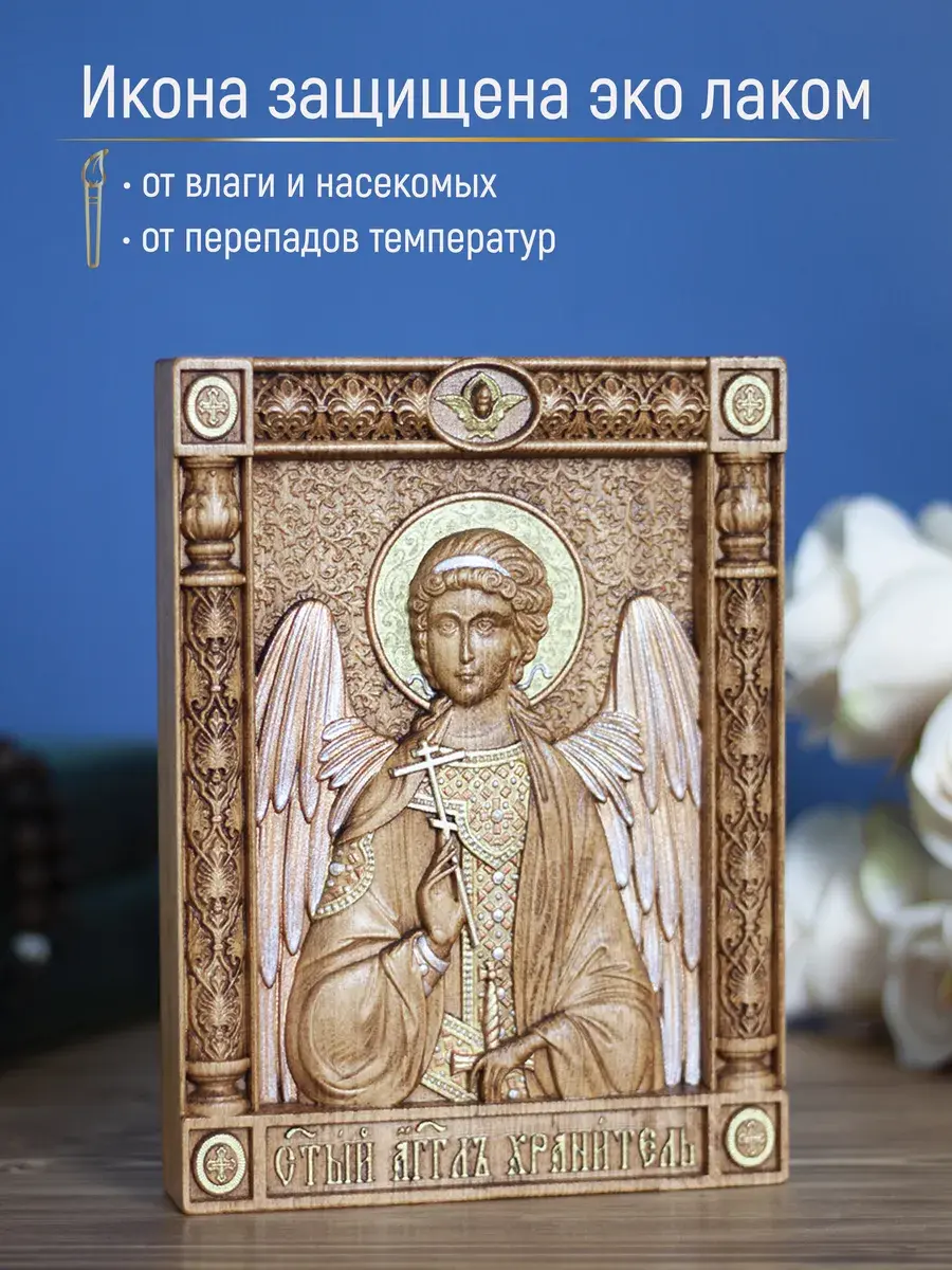 Резная икона Ангел Хранитель идеально подойдет для подарка любимым, родным и близким на любой случай жизни.