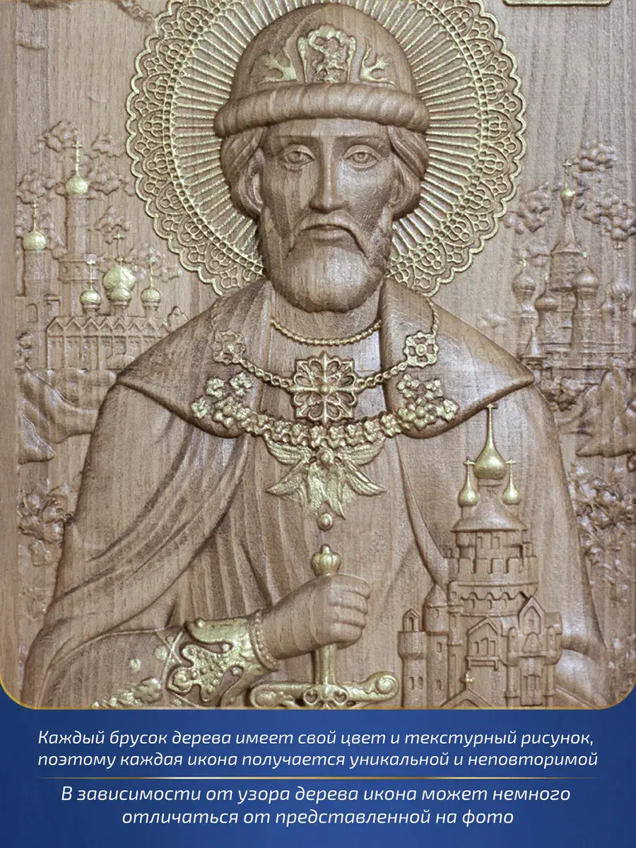 Резная икона «Святой Дмитрий Донской» идеально подойдет для подарка любимым, родным и близким на любой случай жизни.