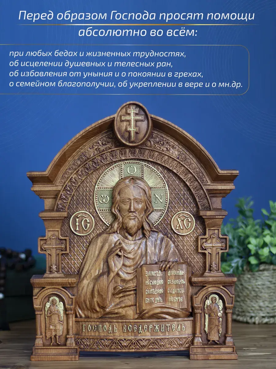 Резная икона «Господь Вседержитель» идеально подойдет для подарка любимым, родным и близким на любой случай жизни.