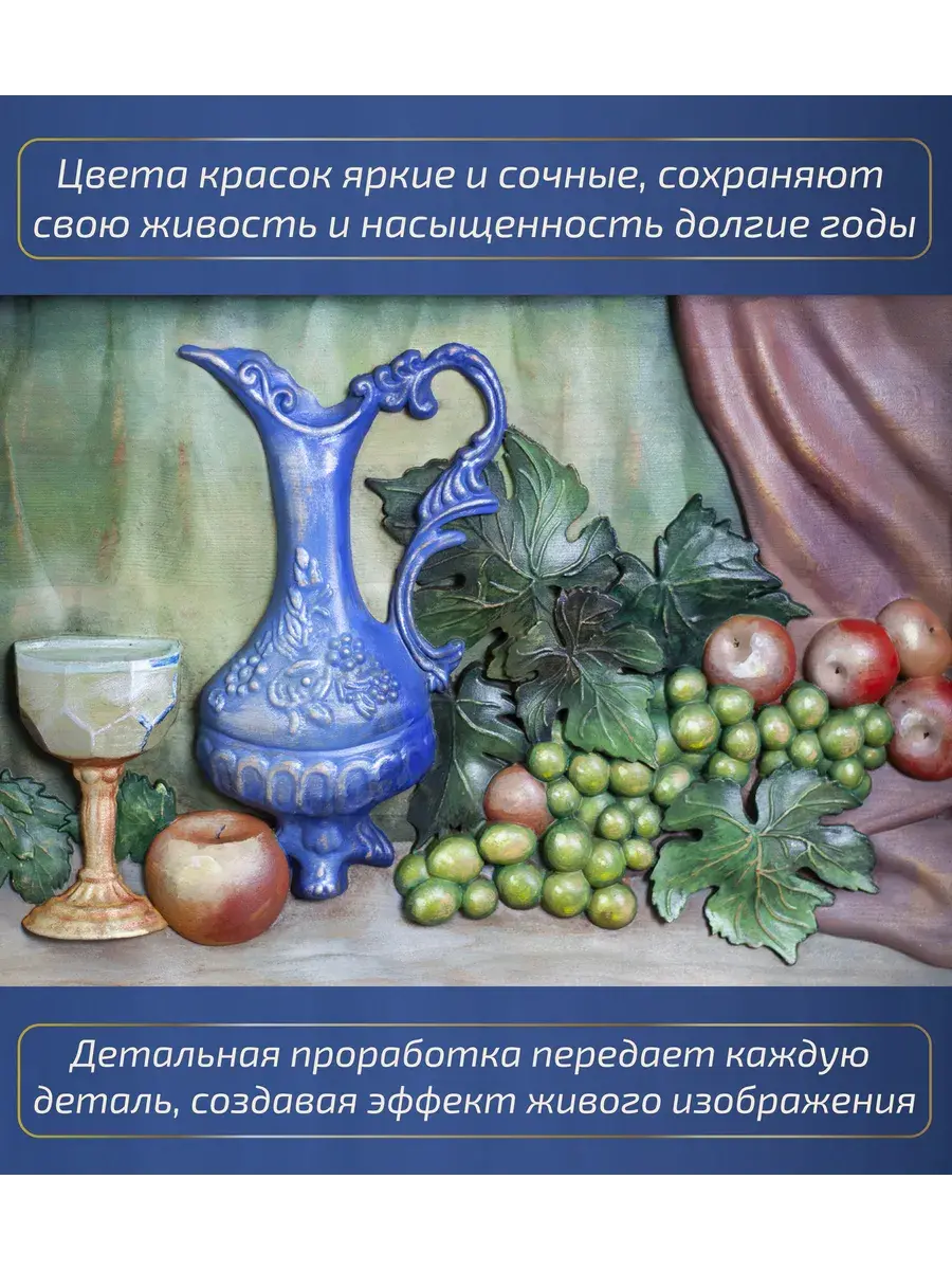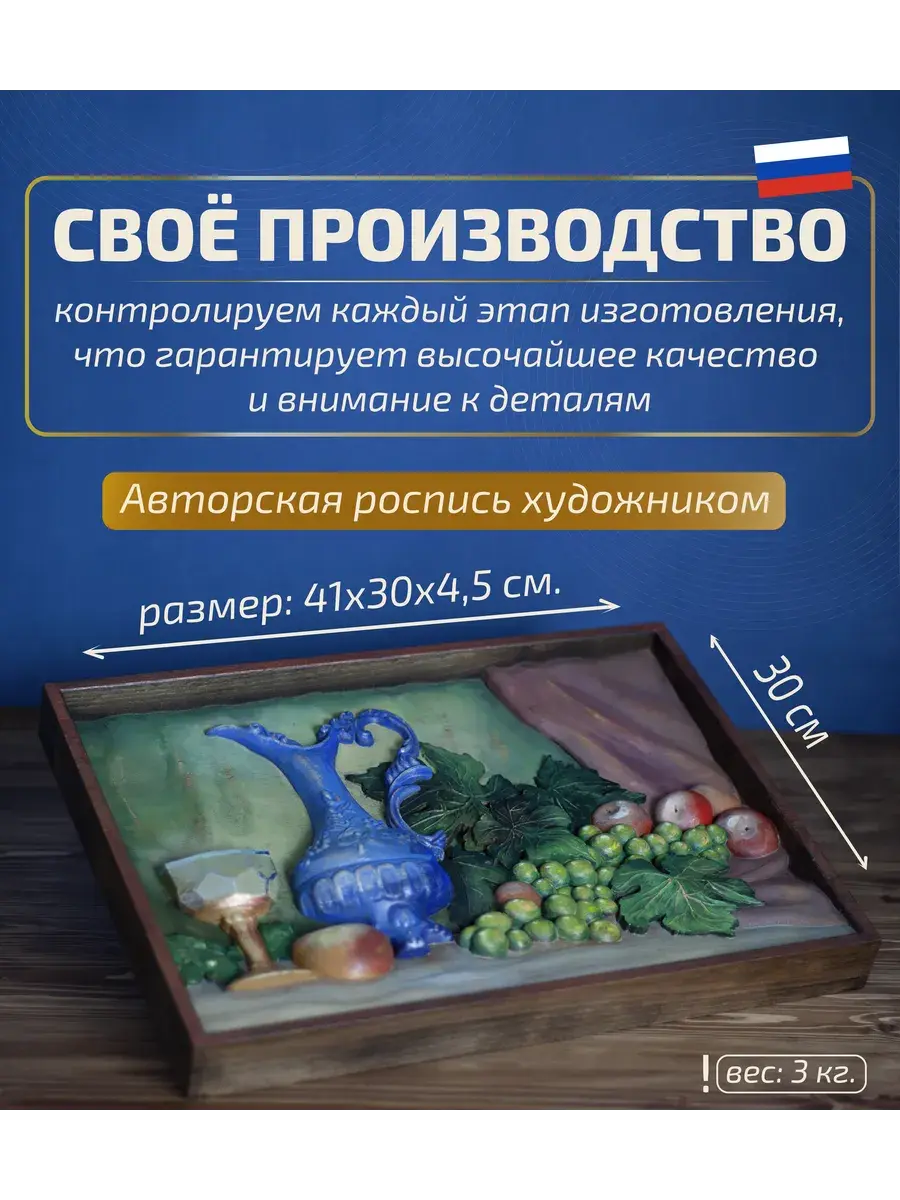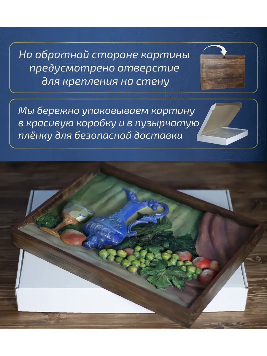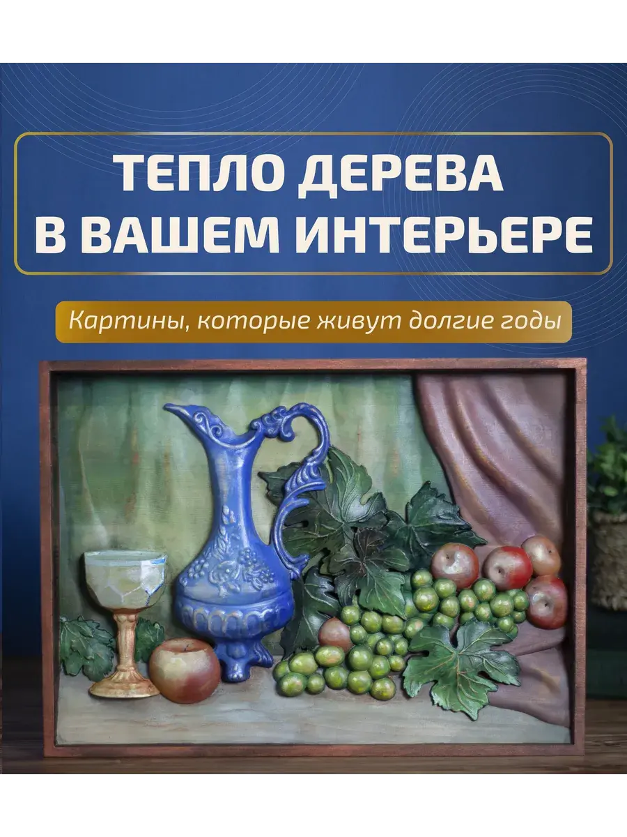 Картина изготовлена из клееного массива бука, что обеспечивает её прочность и долговечность. Объемная 3D резьба, искусно выполненная на фрезерном ЧПУ станке, создает эффект глубины и реалистичности, приковывая взгляд к каждой детали.