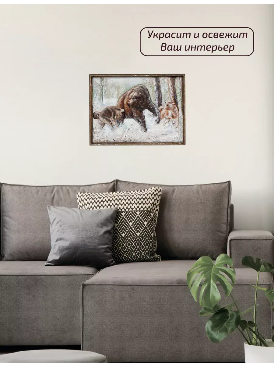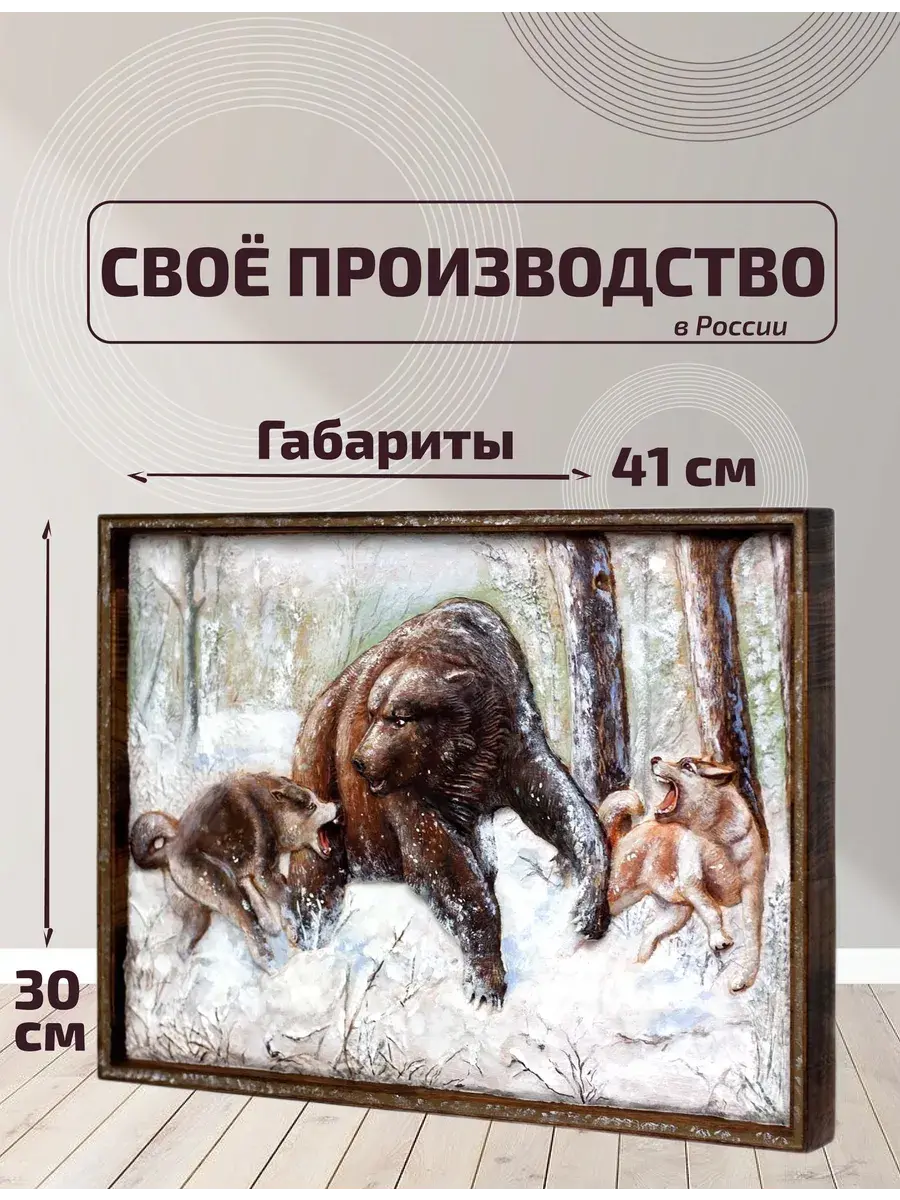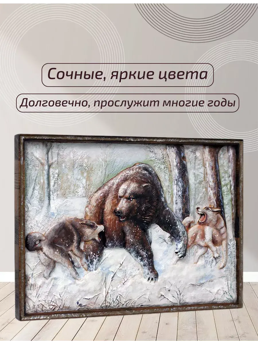 Представляем вашему вниманию картину из дерева "Охота на медведя".