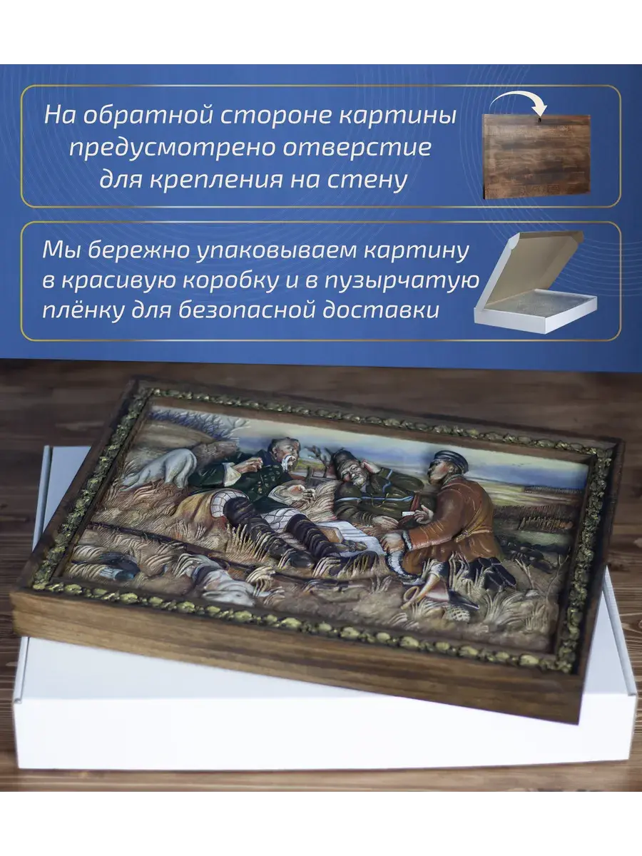 Картина изготовлена из клееного массива бука, что обеспечивает её прочность и долговечность. Объемная 3D резьба, искусно выполненная на фрезерном ЧПУ станке, создает эффект глубины и реалистичности, приковывая взгляд к каждой детали.