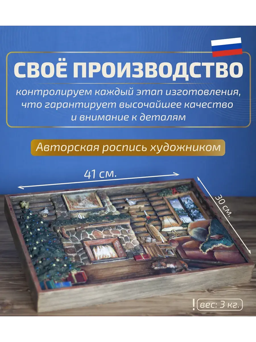 Картина изготовлена из клееного массива бука, что обеспечивает её прочность и долговечность. Объемная 3D резьба, искусно выполненная на фрезерном ЧПУ станке, создает эффект глубины и реалистичности, приковывая взгляд к каждой детали.