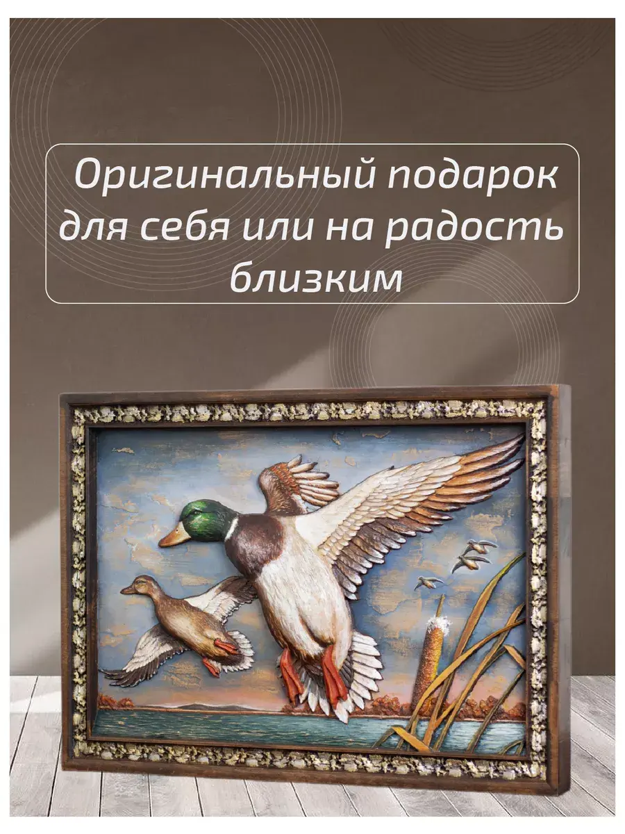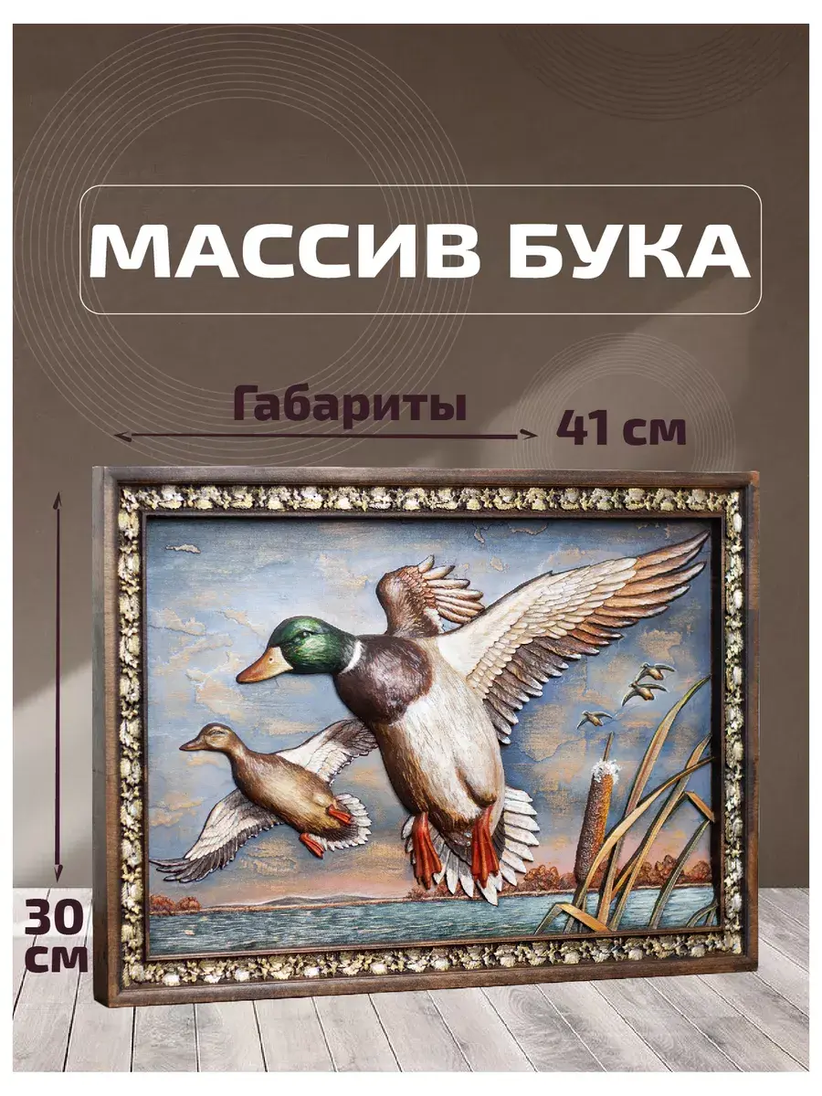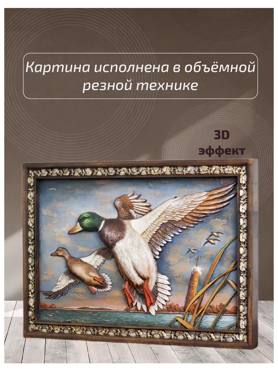 Картина изготовлена из клееного массива бука, что обеспечивает её прочность и долговечность. Объемная 3D резьба, искусно выполненная на фрезерном ЧПУ станке, создает эффект глубины и реалистичности, приковывая взгляд к каждой детали.
