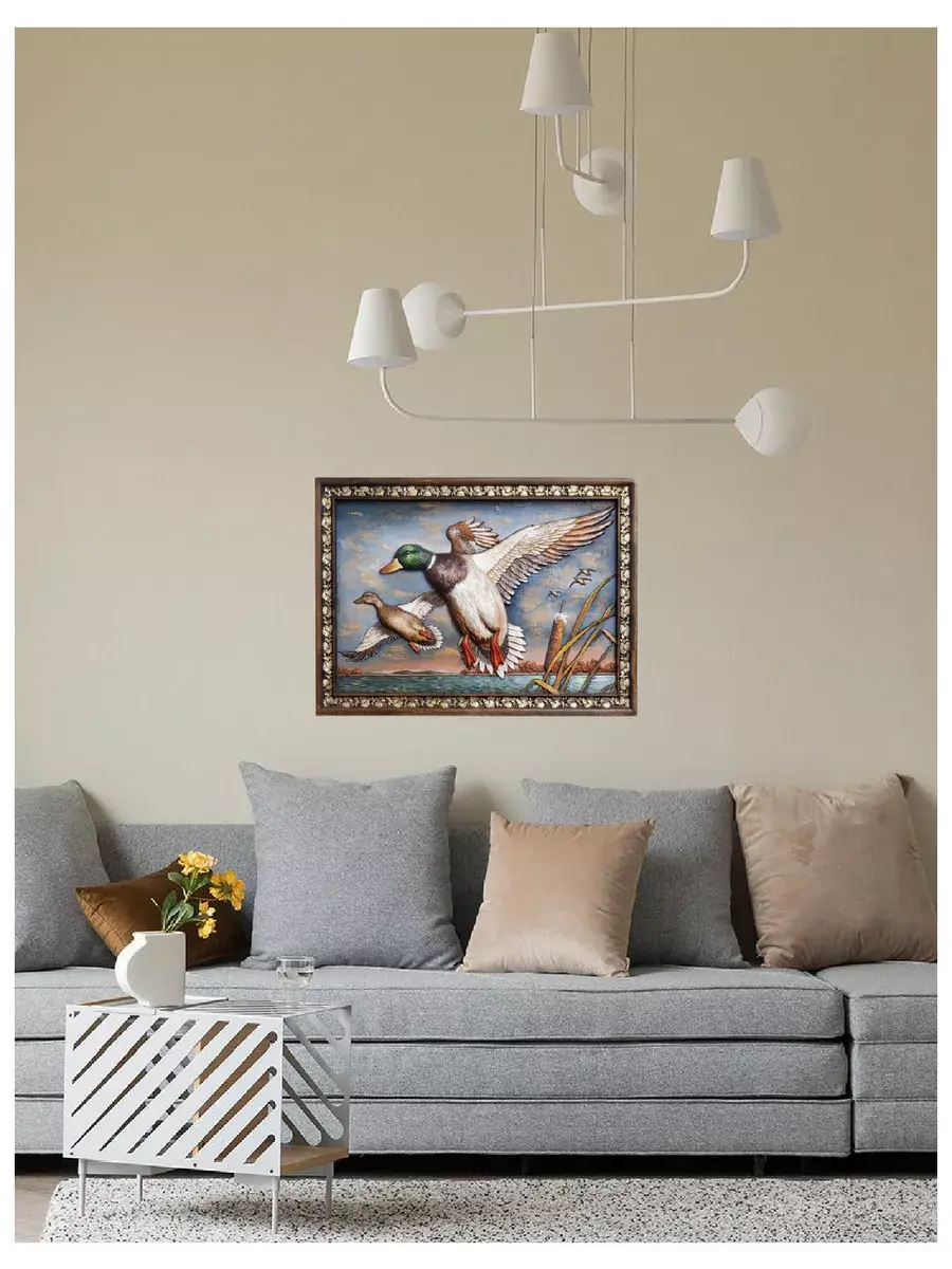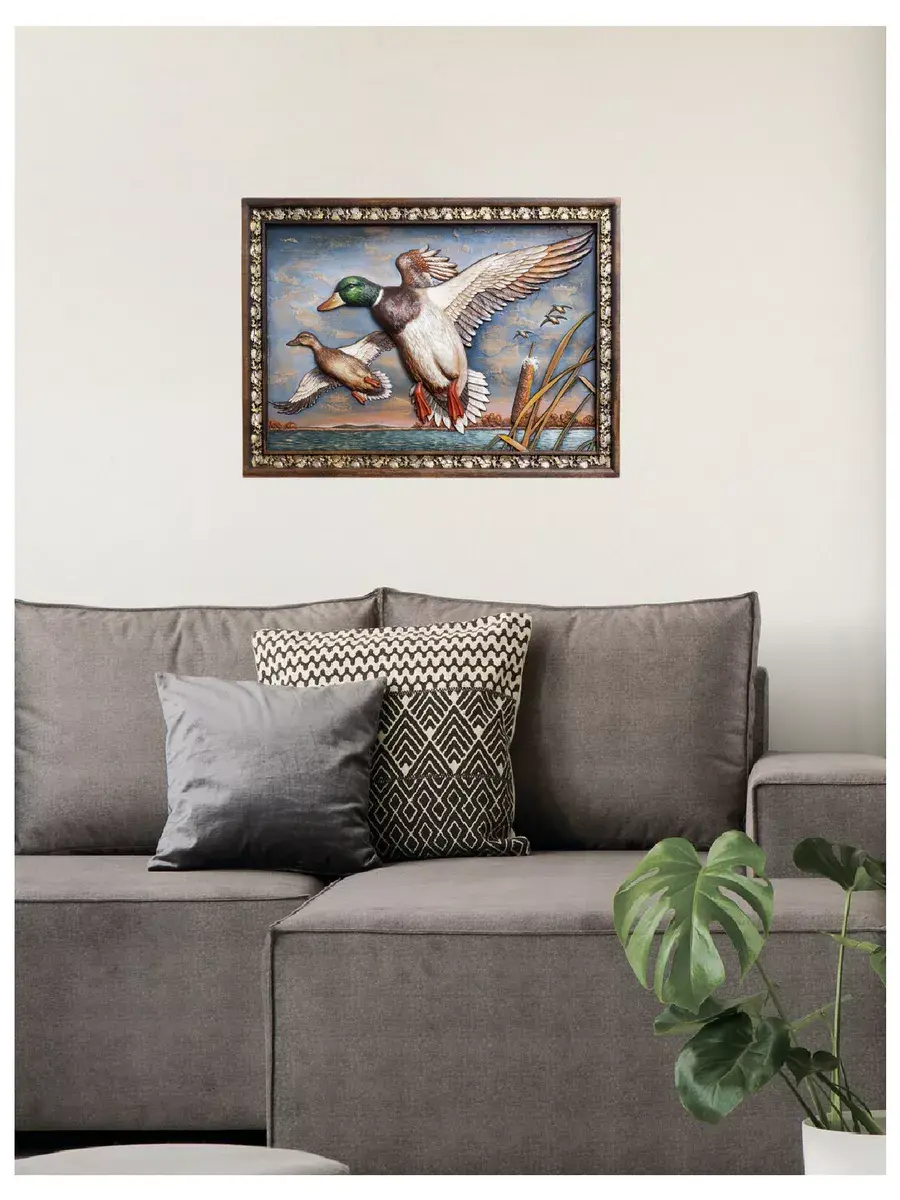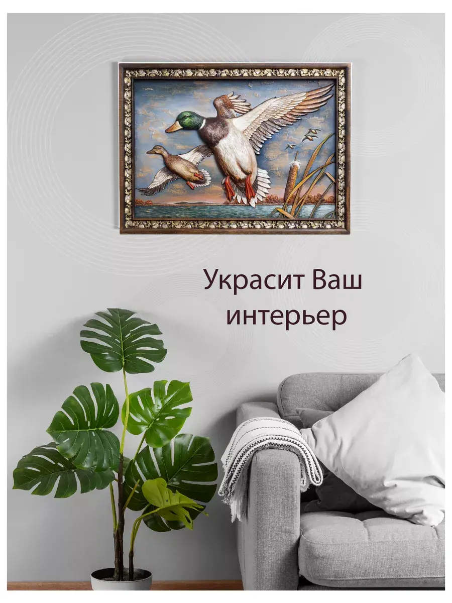 Картина изготовлена из клееного массива бука, что обеспечивает её прочность и долговечность. Объемная 3D резьба, искусно выполненная на фрезерном ЧПУ станке, создает эффект глубины и реалистичности, приковывая взгляд к каждой детали.
