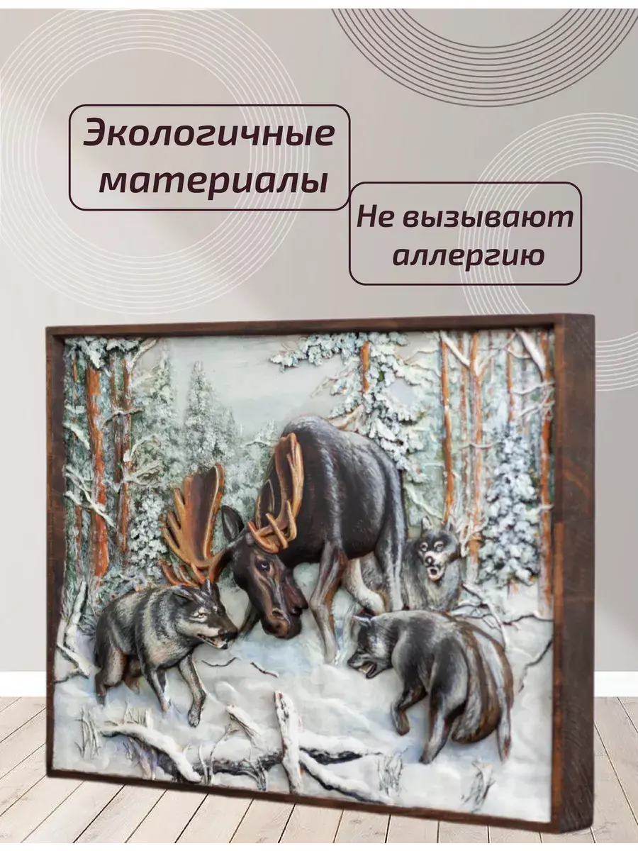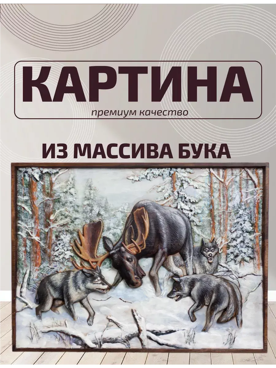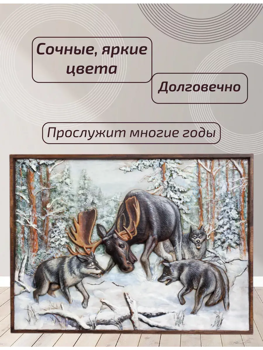 Картина изготовлена из клееного массива бука, что обеспечивает её прочность и долговечность. Объемная 3D резьба, искусно выполненная на фрезерном ЧПУ станке, создает эффект глубины и реалистичности, приковывая взгляд к каждой детали.