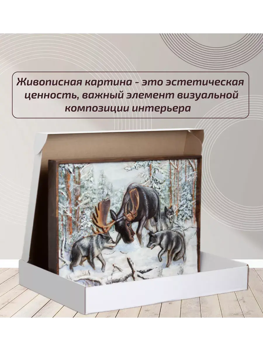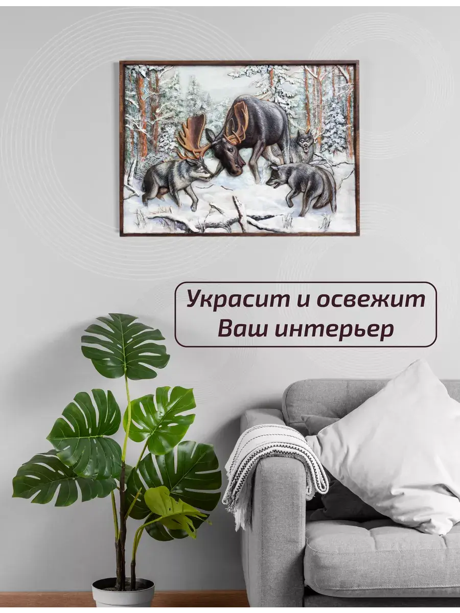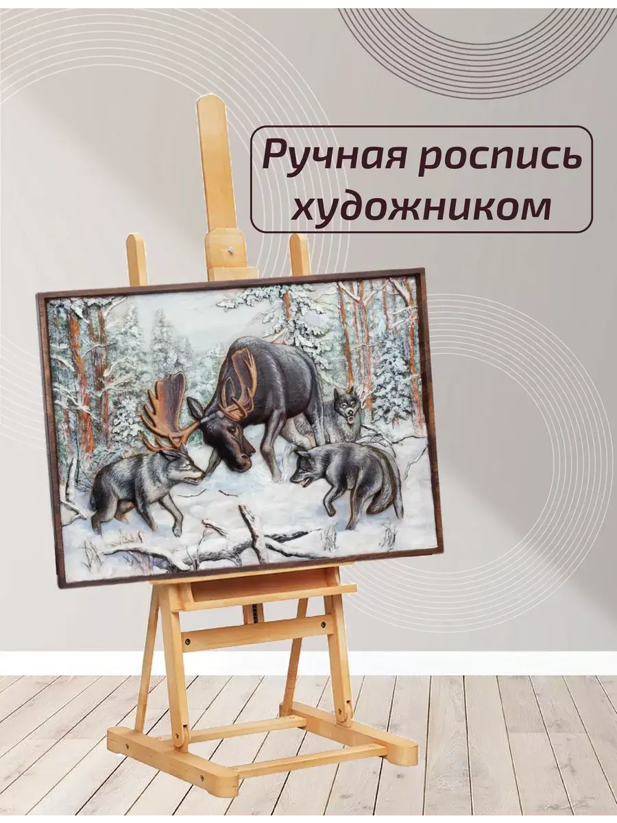 Картина изготовлена из клееного массива бука, что обеспечивает её прочность и долговечность. Объемная 3D резьба, искусно выполненная на фрезерном ЧПУ станке, создает эффект глубины и реалистичности, приковывая взгляд к каждой детали.