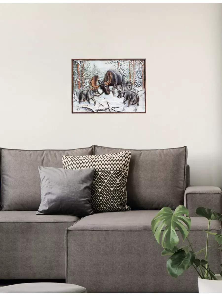 Завершает образ кропотливая работа художника, который вручную раскрашивает картину, придавая ей неповторимый характер и живость.