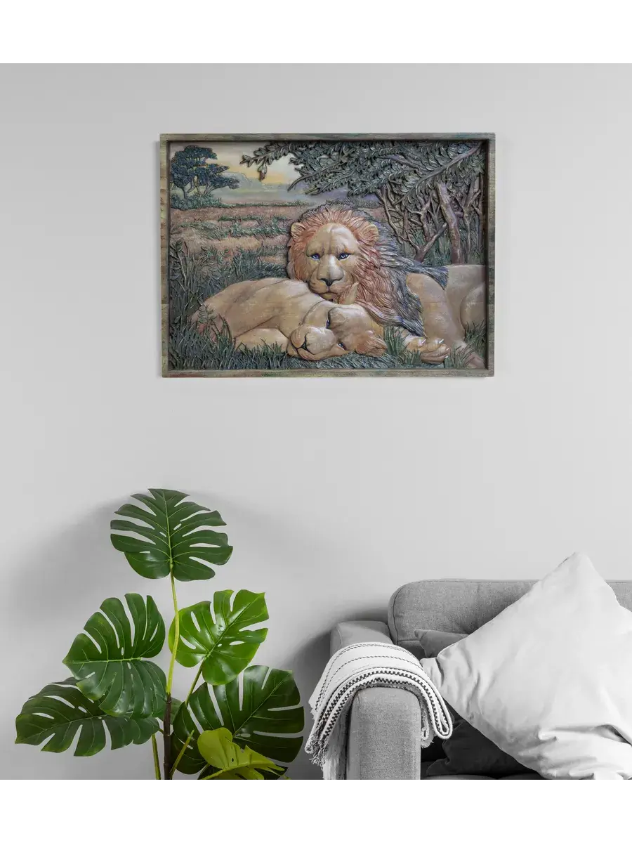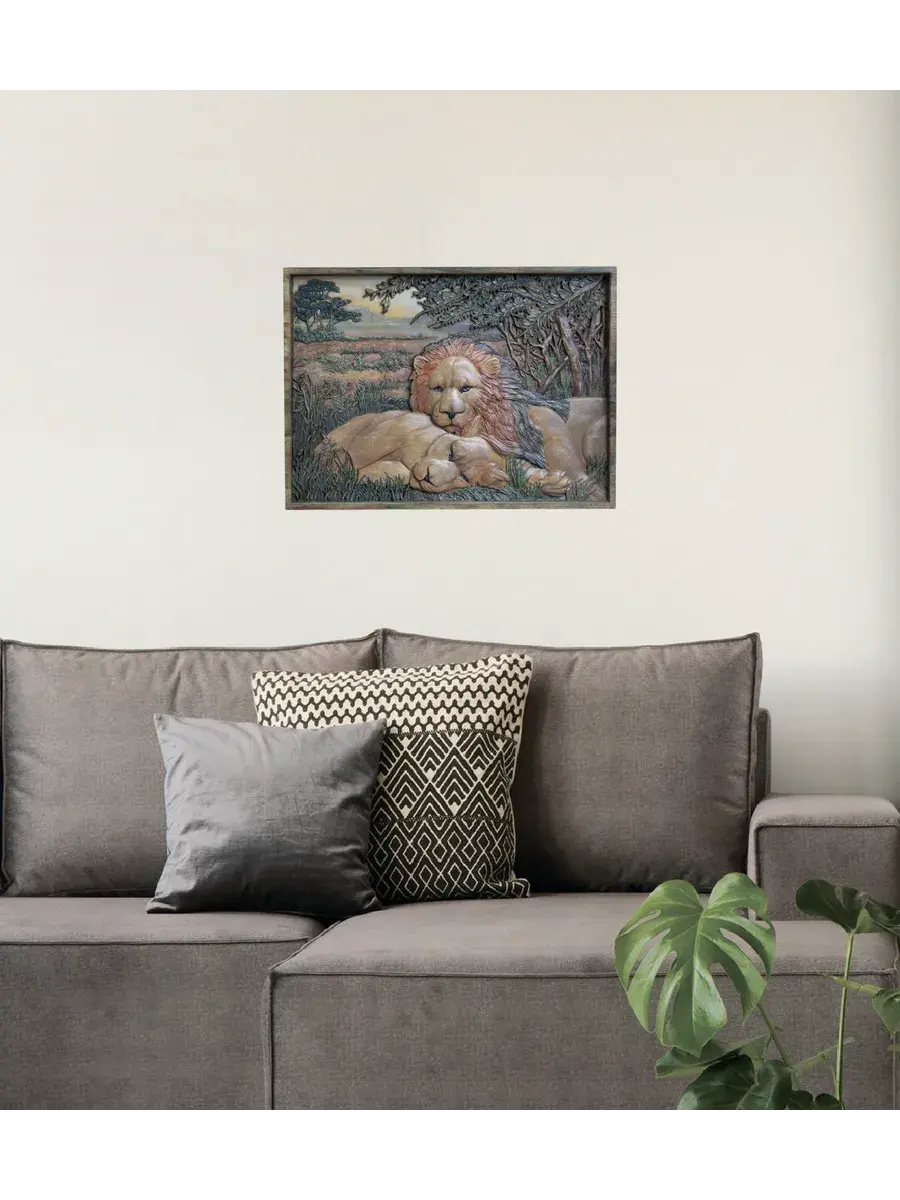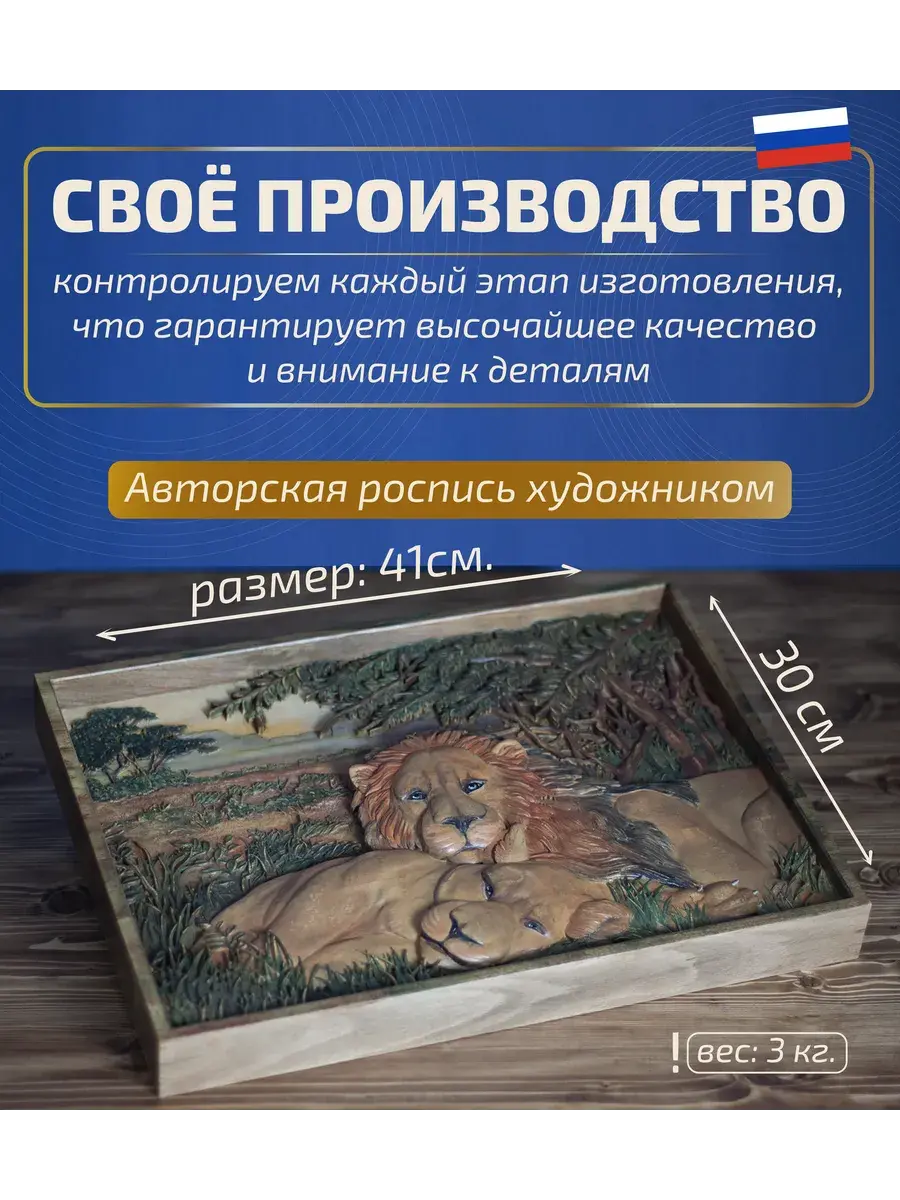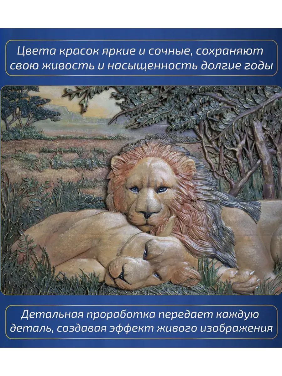 Картина изготовлена из клееного массива бука, что обеспечивает её прочность и долговечность. Объемная 3D резьба, искусно выполненная на фрезерном ЧПУ станке, создает эффект глубины и реалистичности, приковывая взгляд к каждой детали.