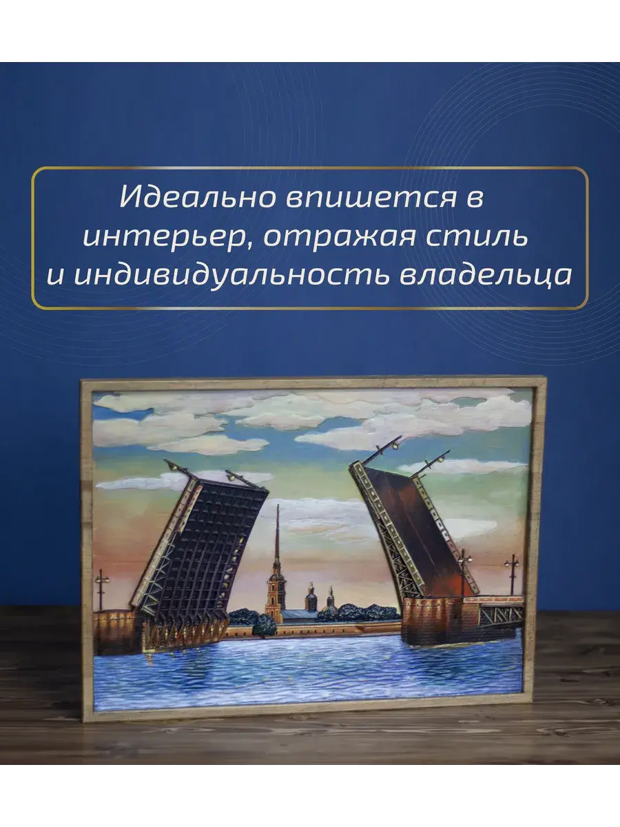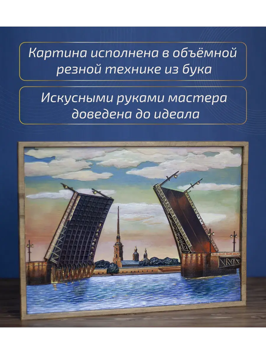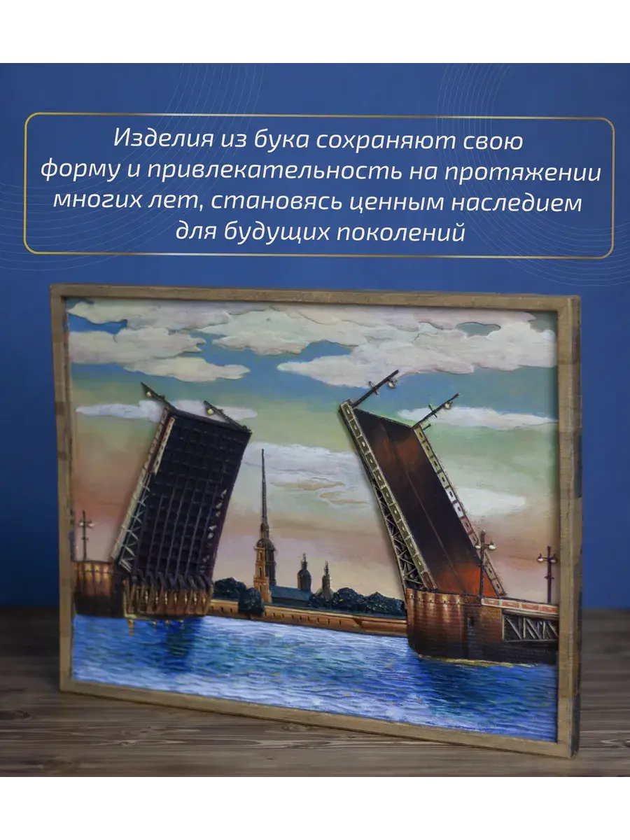 Картина изготовлена из клееного массива бука, что обеспечивает её прочность и долговечность. Объемная 3D резьба, искусно выполненная на фрезерном ЧПУ станке, создает эффект глубины и реалистичности, приковывая взгляд к каждой детали.