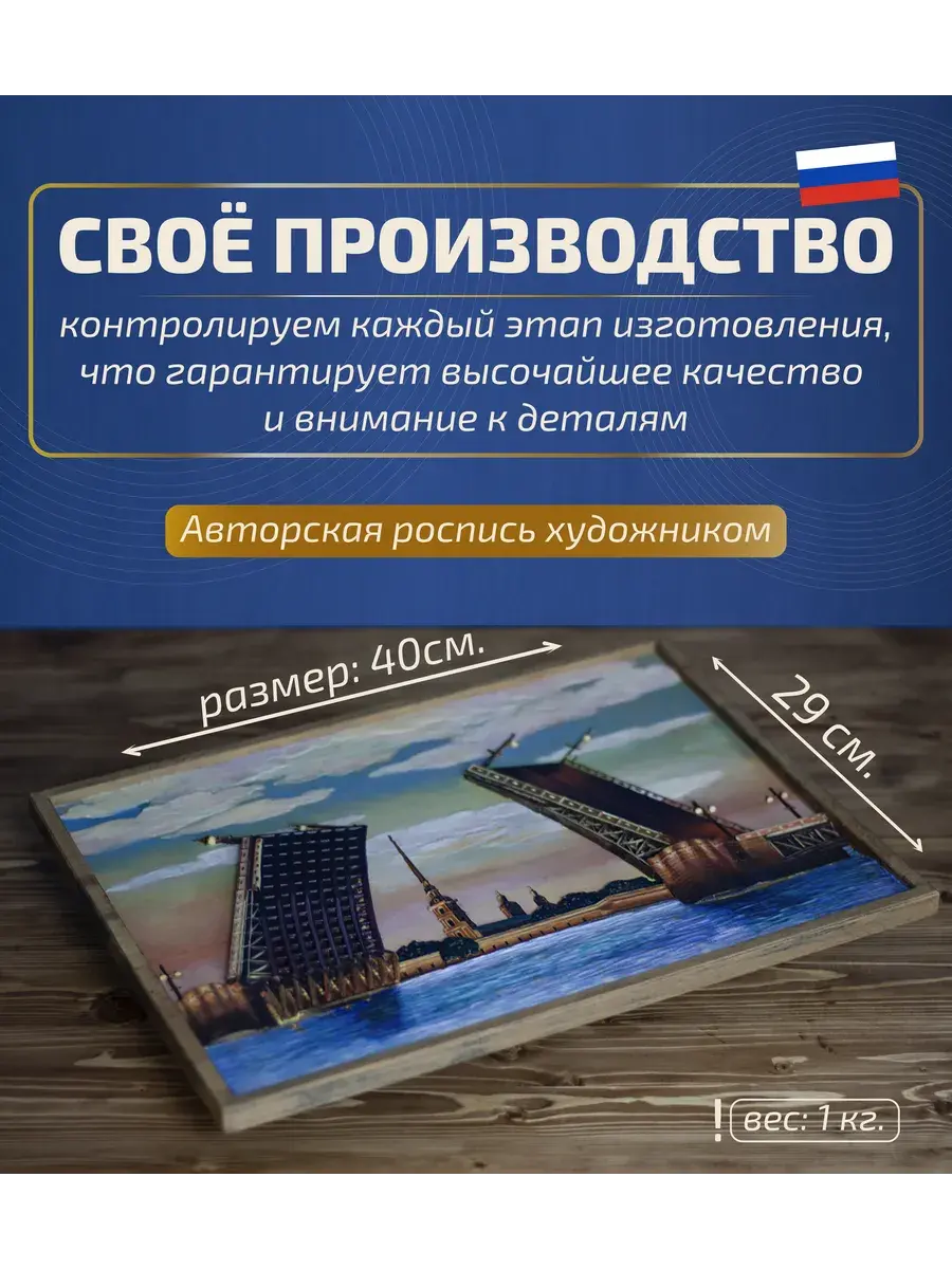Завершает образ кропотливая работа художника, который вручную раскрашивает картину, придавая ей неповторимый характер и живость.