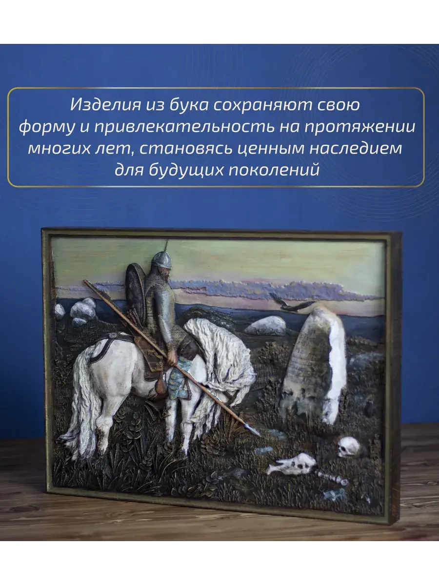 Картина изготовлена из клееного массива бука, что обеспечивает её прочность и долговечность. Объемная 3D резьба, искусно выполненная на фрезерном ЧПУ станке, создает эффект глубины и реалистичности, приковывая взгляд к каждой детали.