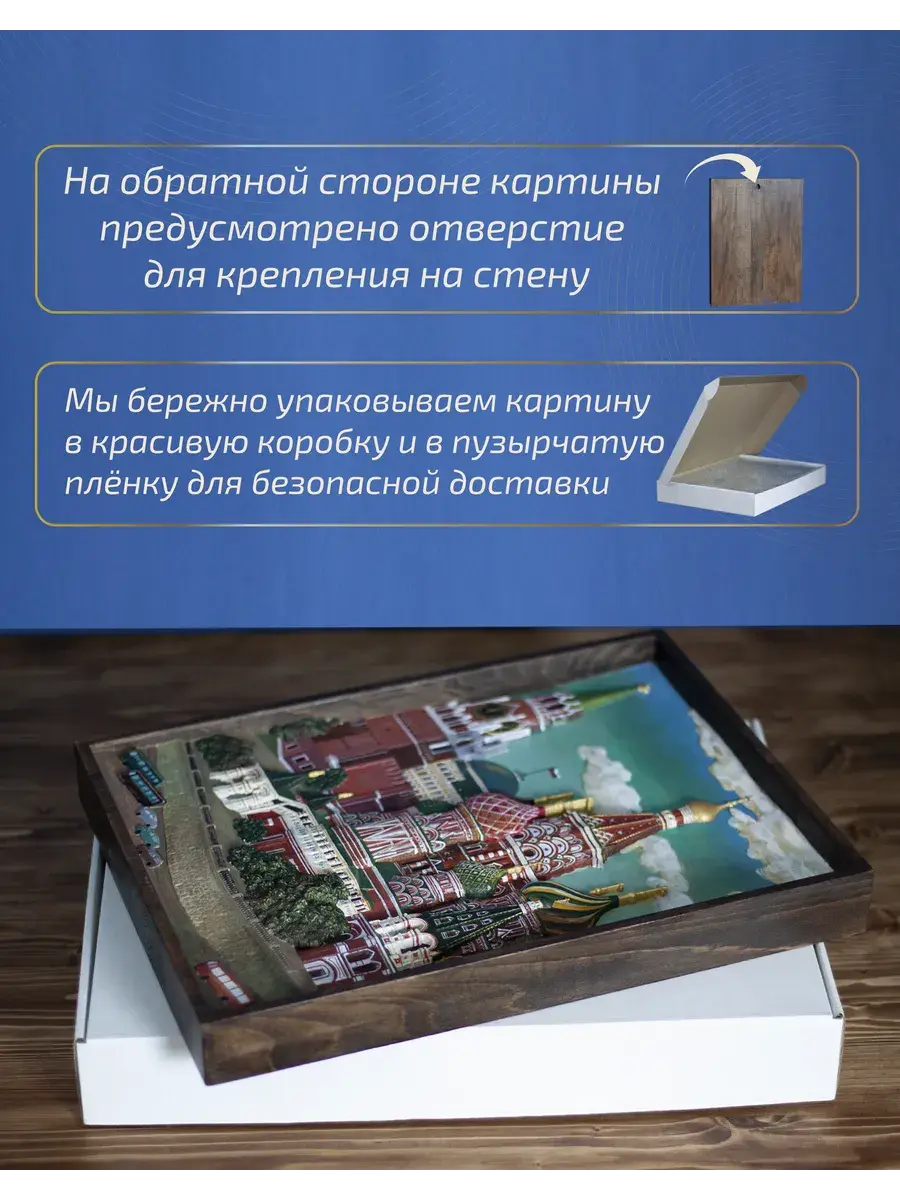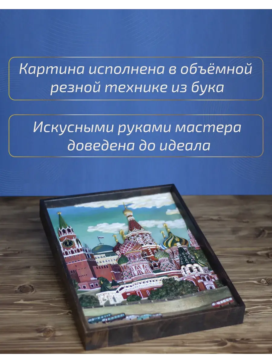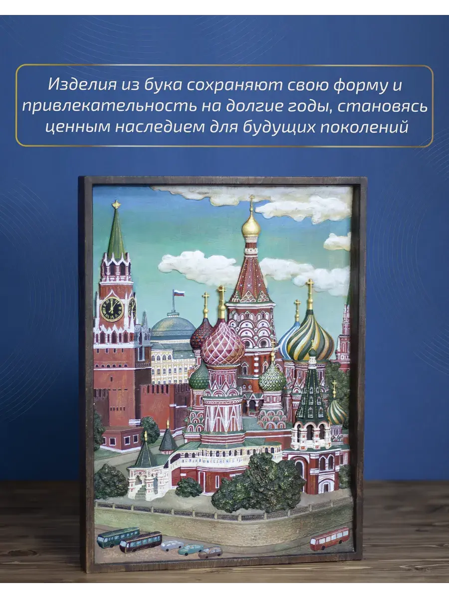 Картина изготовлена из клееного массива бука, что обеспечивает её прочность и долговечность. Объемная 3D резьба, искусно выполненная на фрезерном ЧПУ станке, создает эффект глубины и реалистичности, приковывая взгляд к каждой детали.