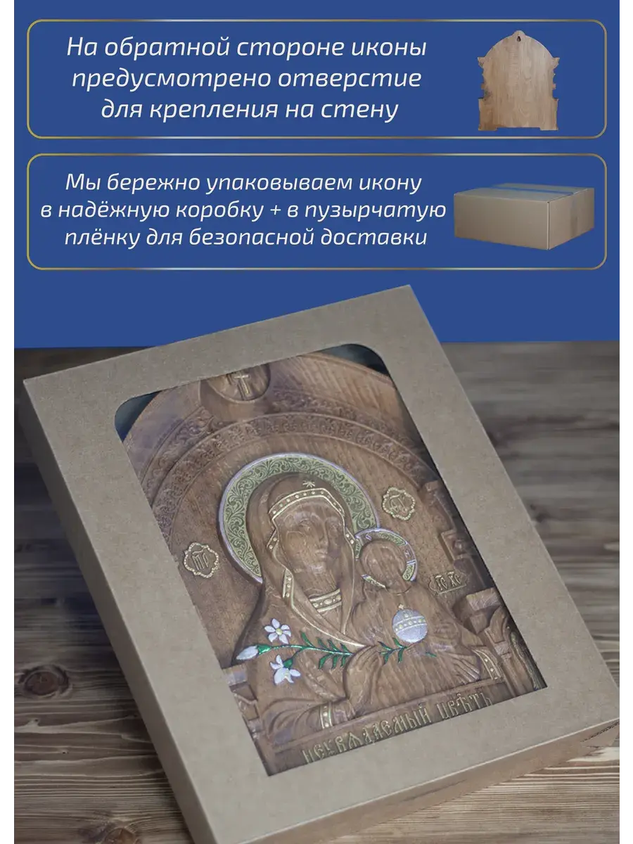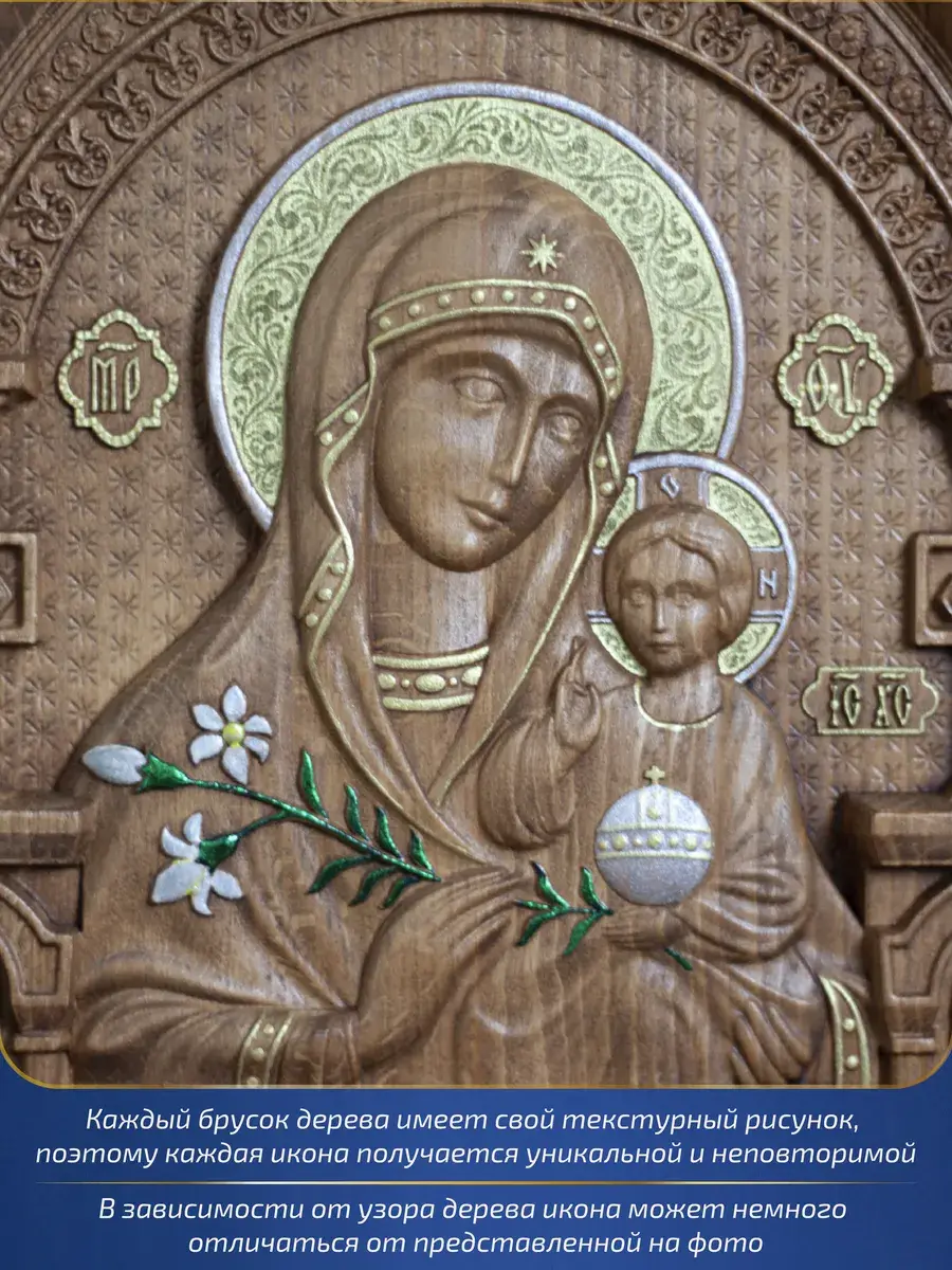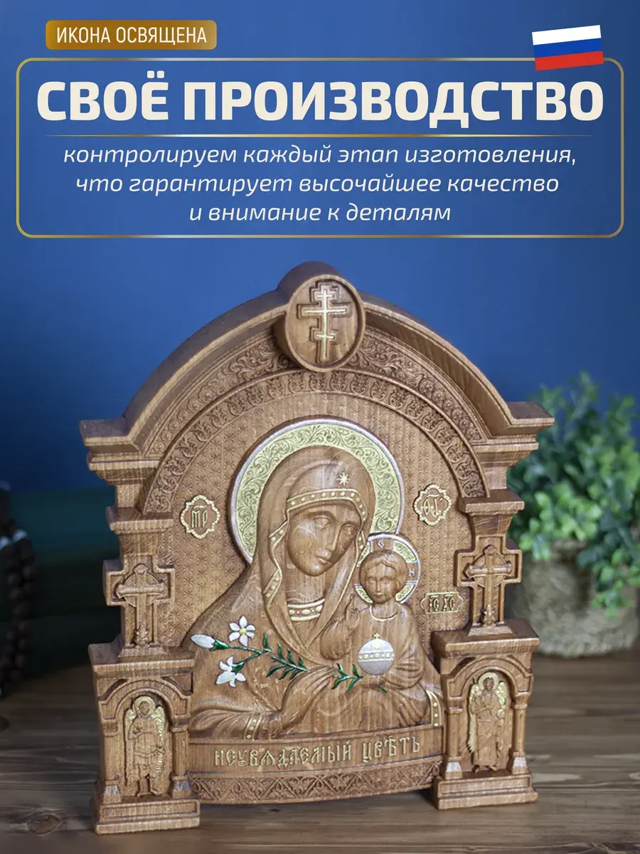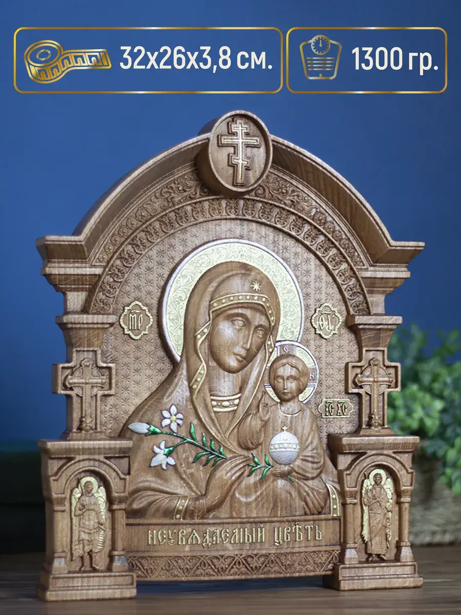 Представляем вашему вниманию освящённую резную икону Божией Матери «Неувядаемый Цвет».