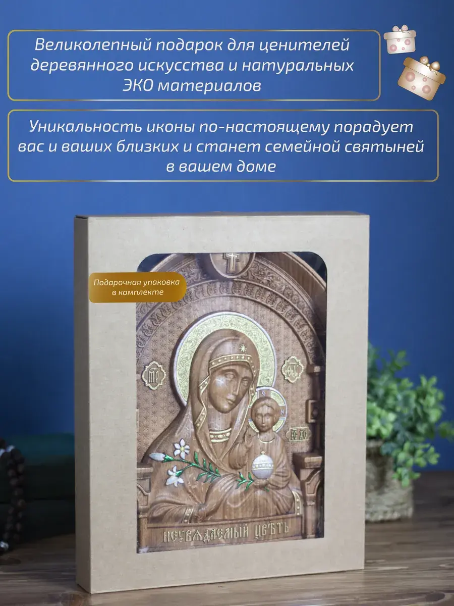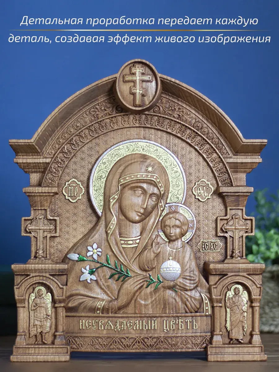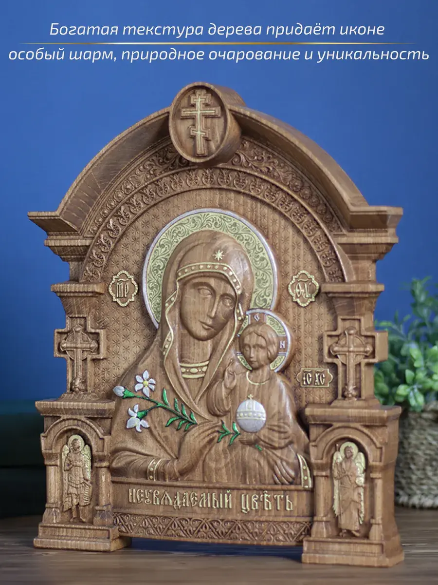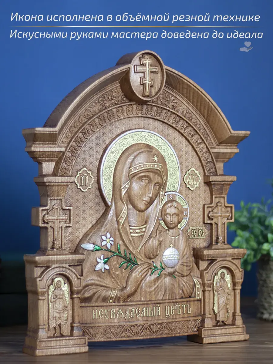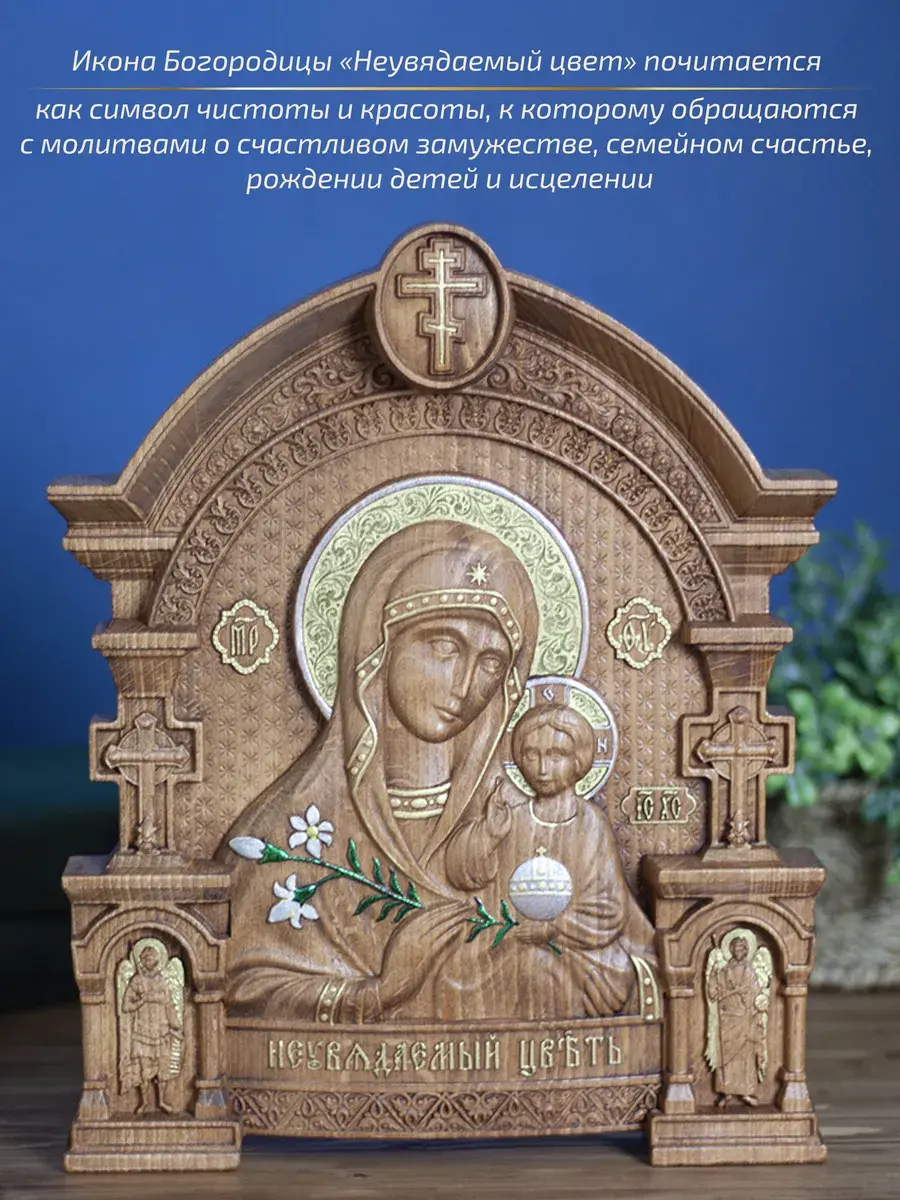 Резная икона Божией Матери «Неувядаемый Цвет» идеально подойдет для подарка любимым, родным и близким на любой случай жизни.