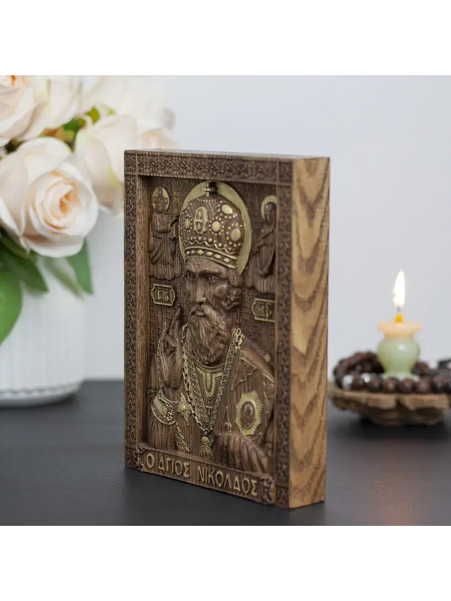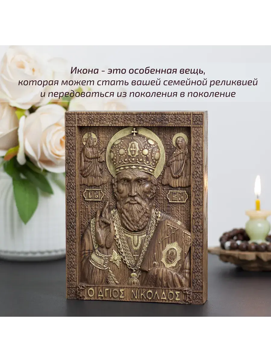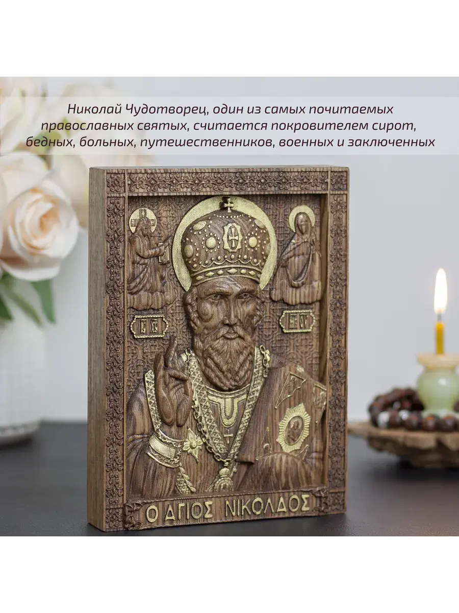 Резная икона Святой Николай Чудотворец идеально подойдет для подарка любимым, родным и близким на любой случай жизни.