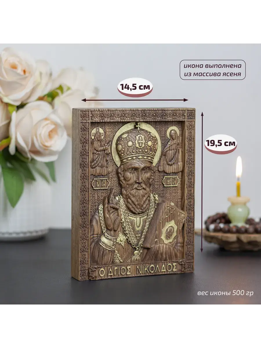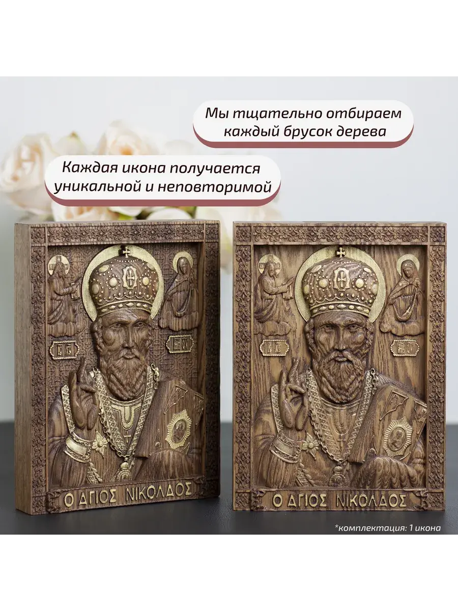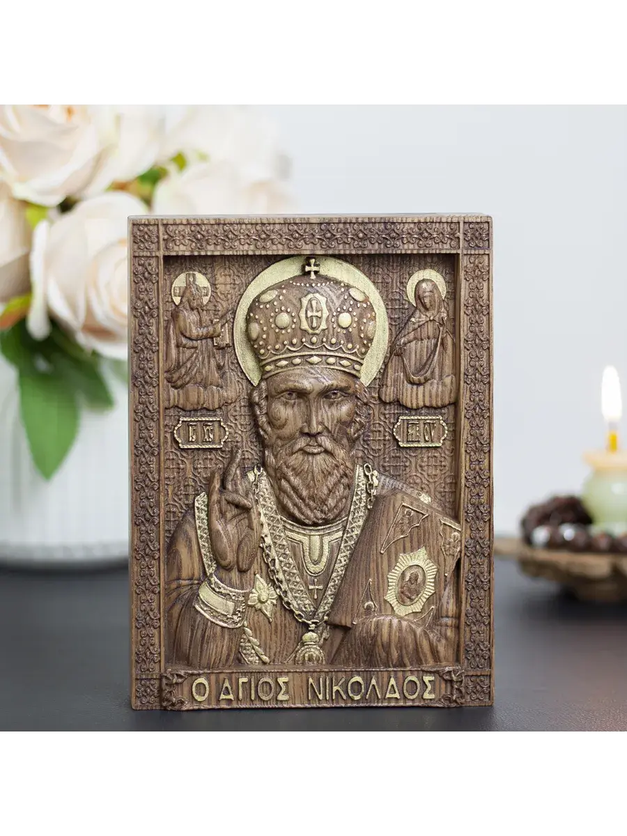 Резная икона Святой Николай Чудотворец идеально подойдет для подарка любимым, родным и близким на любой случай жизни.