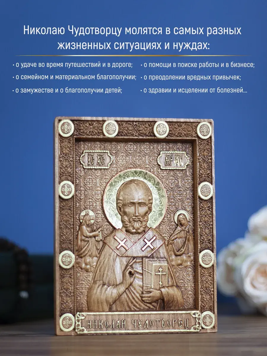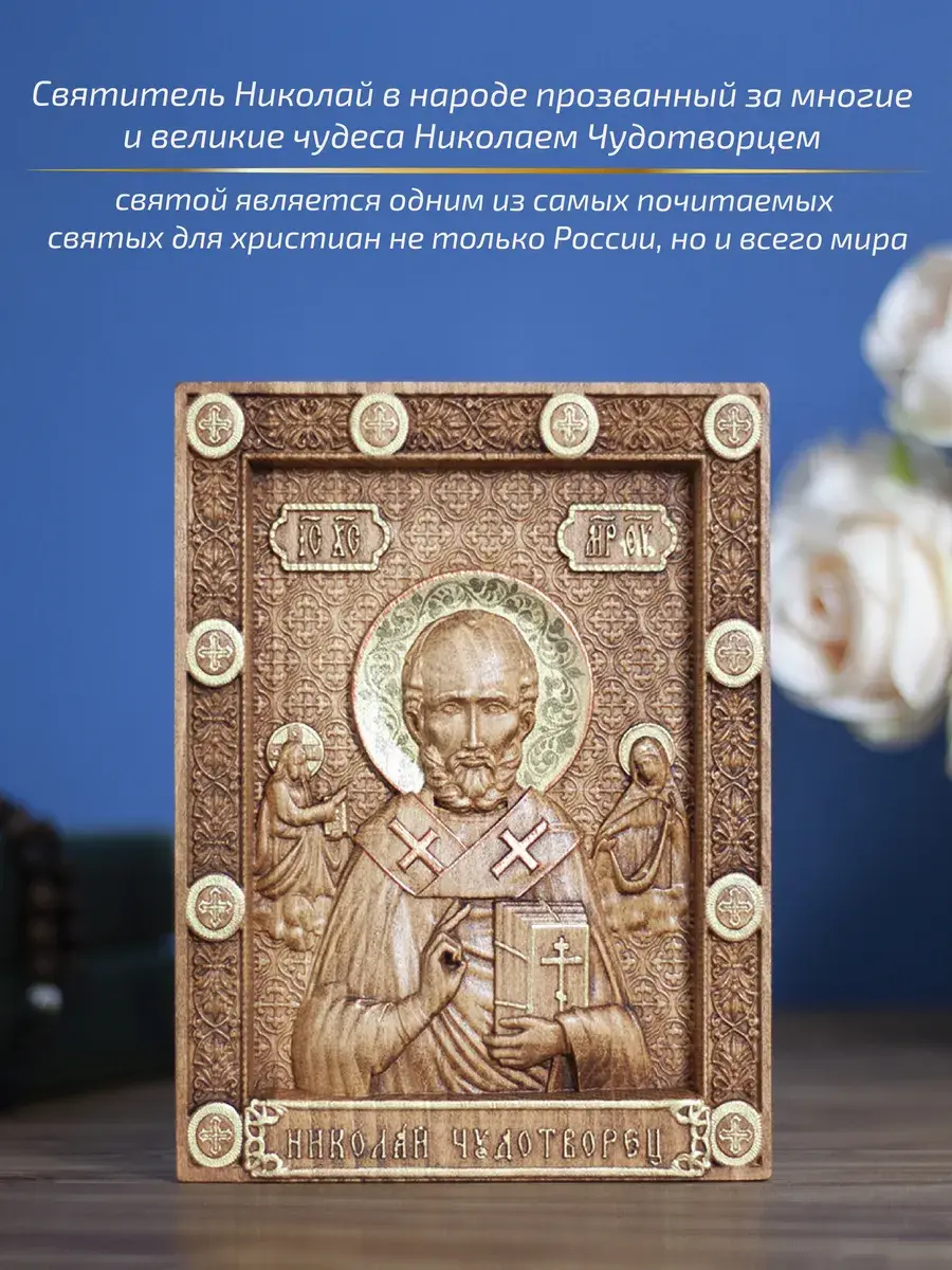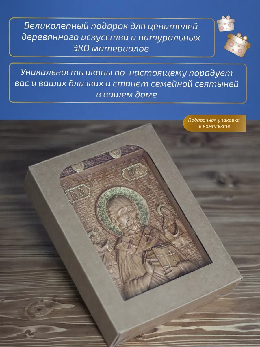 Резная икона Святой Николай Чудотворец идеально подойдет для подарка любимым, родным и близким на любой случай жизни.