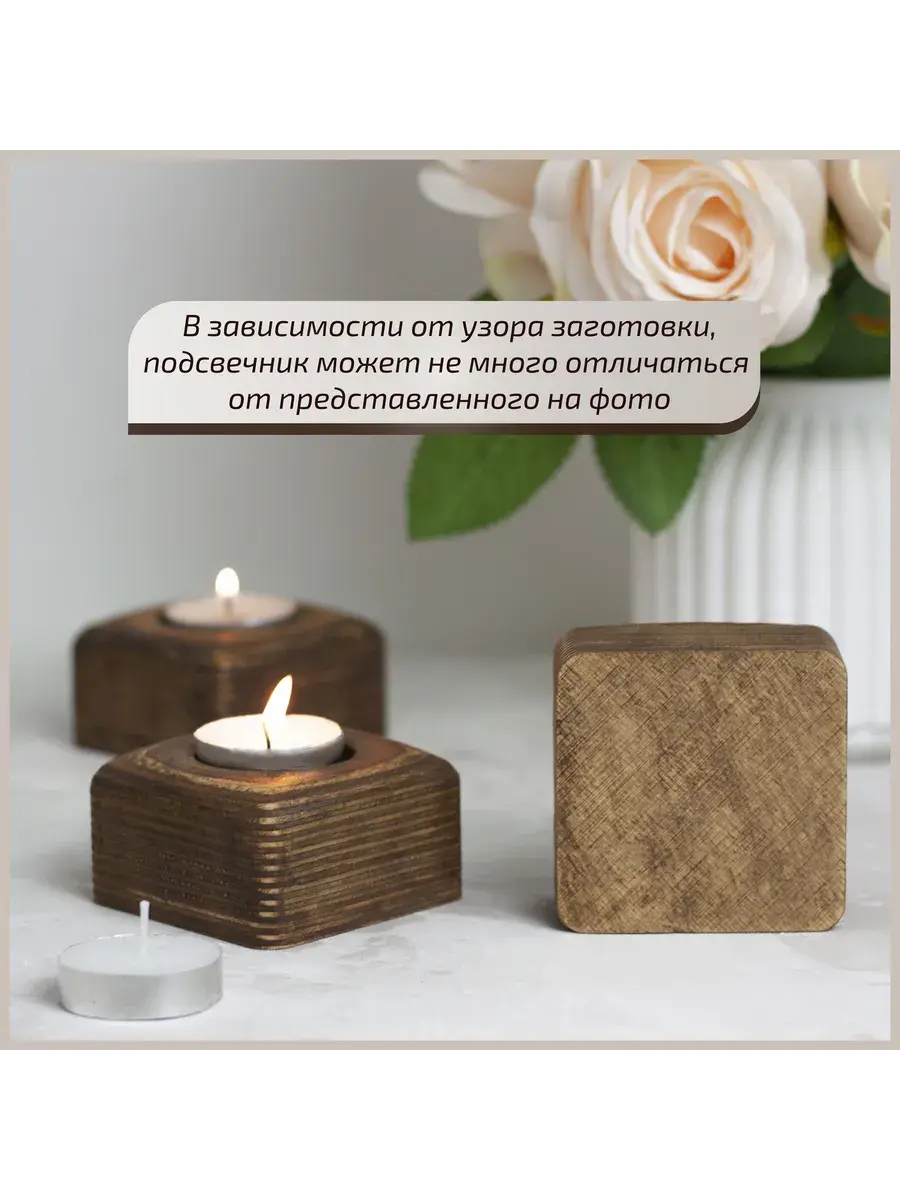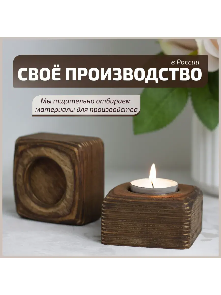 Материал изделия – высококачественная березовая фанера, известная своей прочностью, гладкой текстурой и красивым естественным рисунком. Натуральная текстура березы добавляет подсвечнику особый шарм и теплоту, делая их еще более привлекательными для глаз.