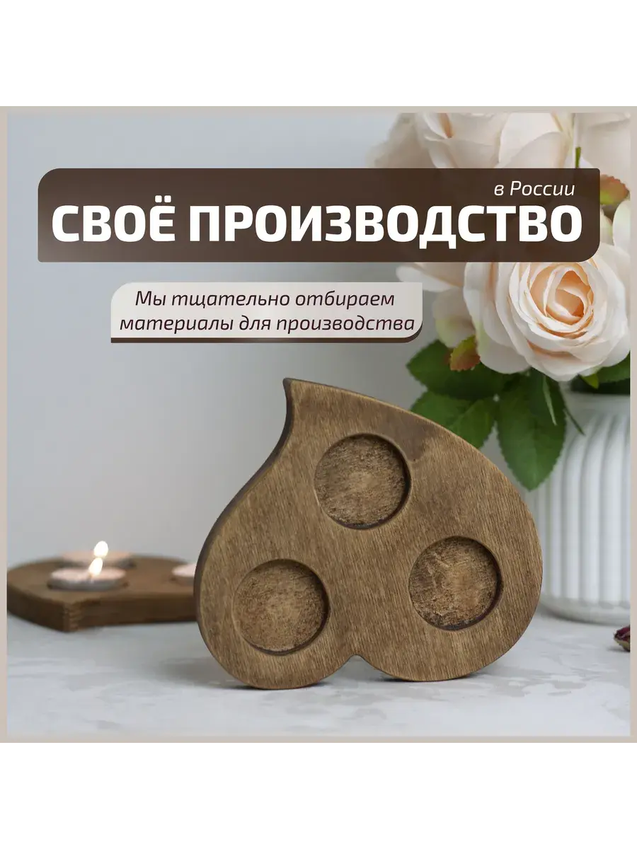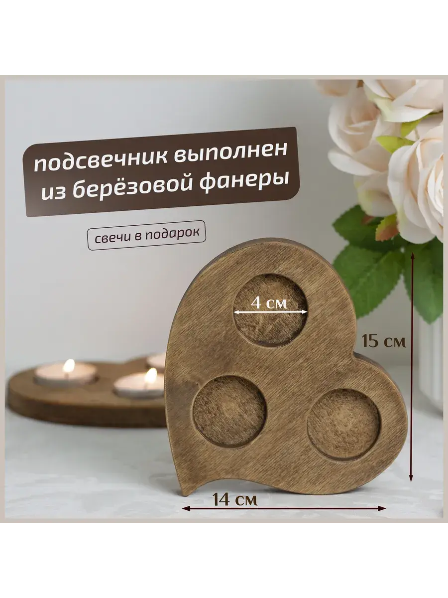 Материал изделия – высококачественная березовая фанера, известная своей прочностью, гладкой текстурой и красивым естественным рисунком. Натуральная текстура березы добавляет подсвечнику особый шарм и теплоту, делая их еще более привлекательными для глаз.