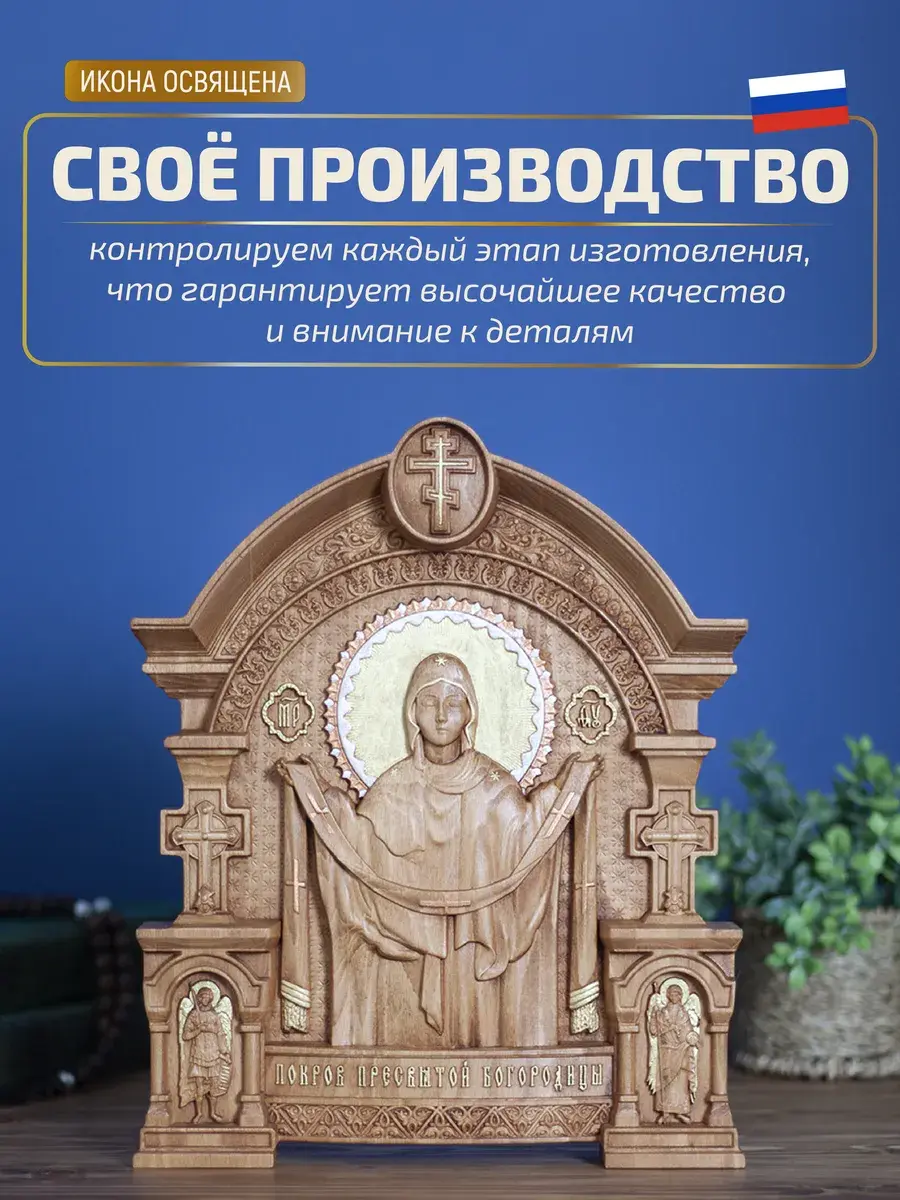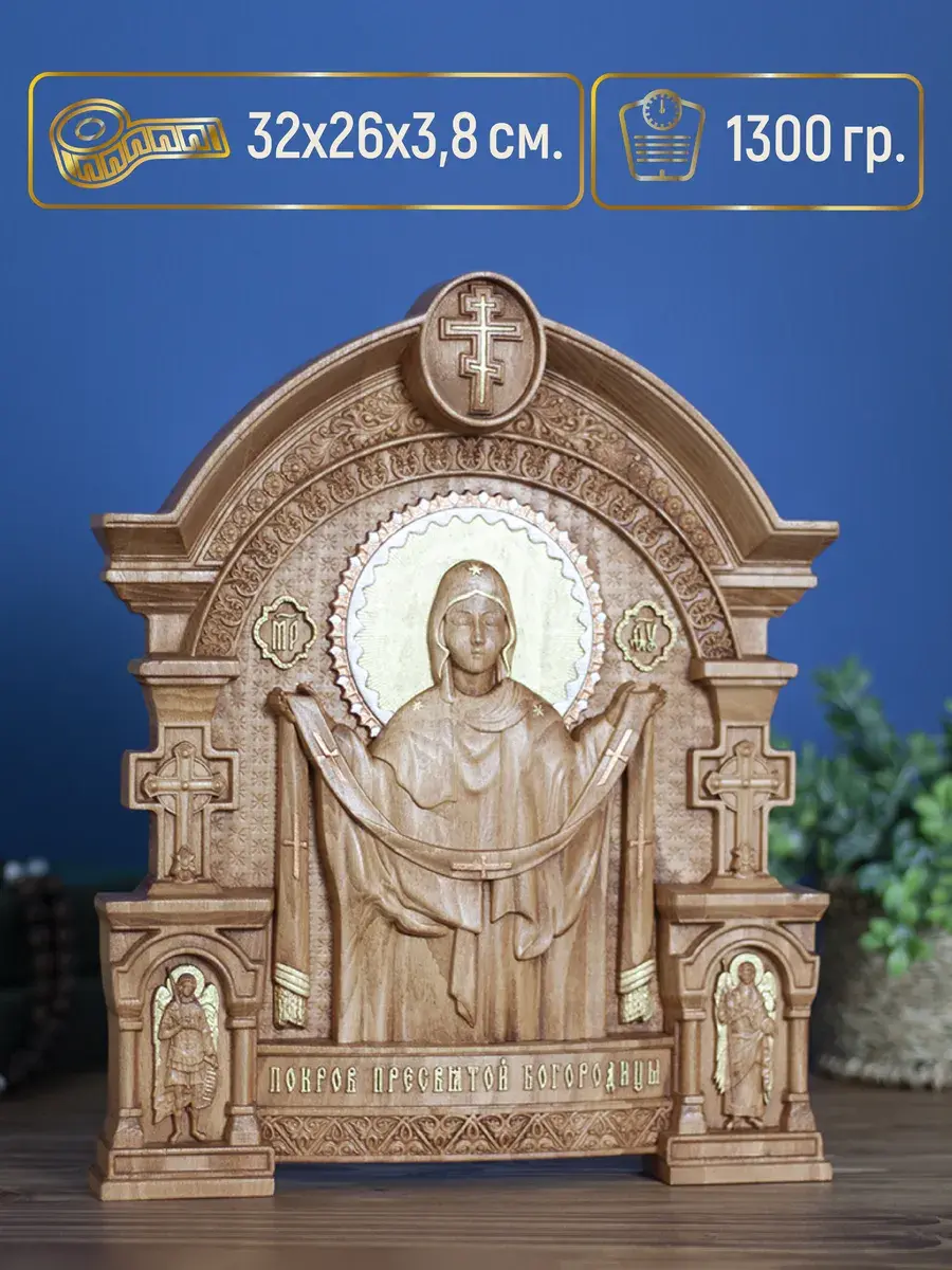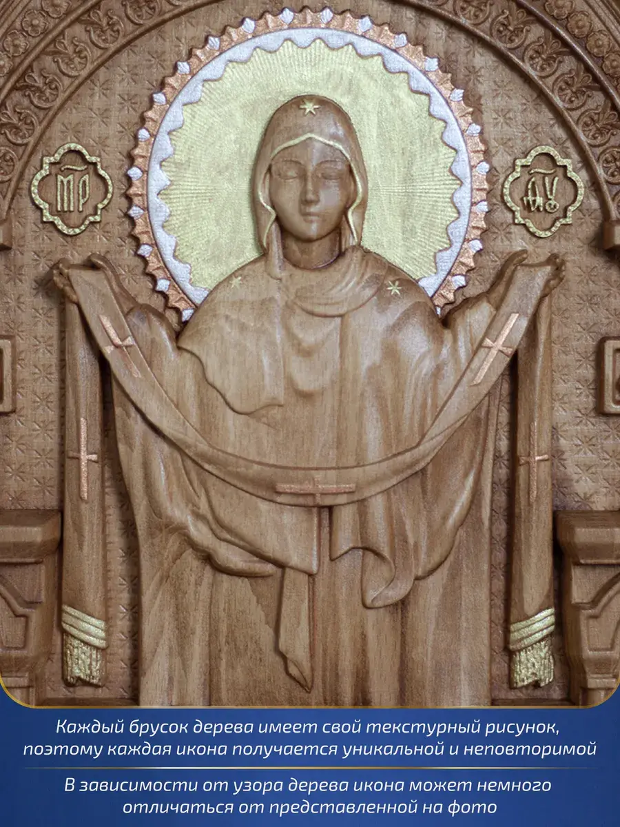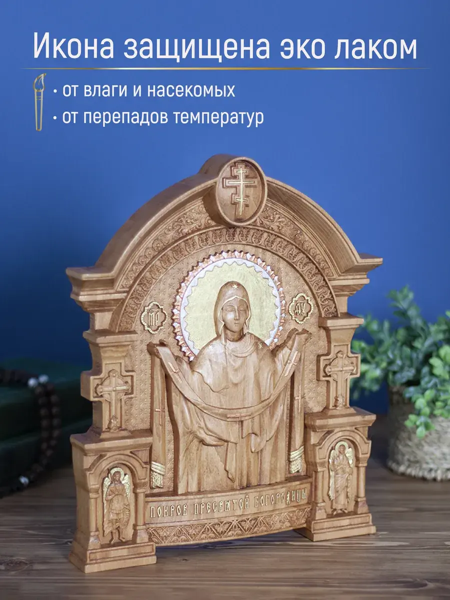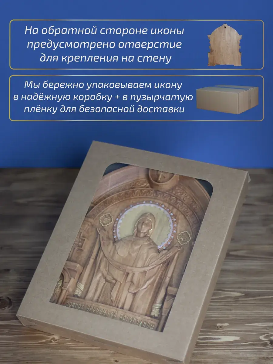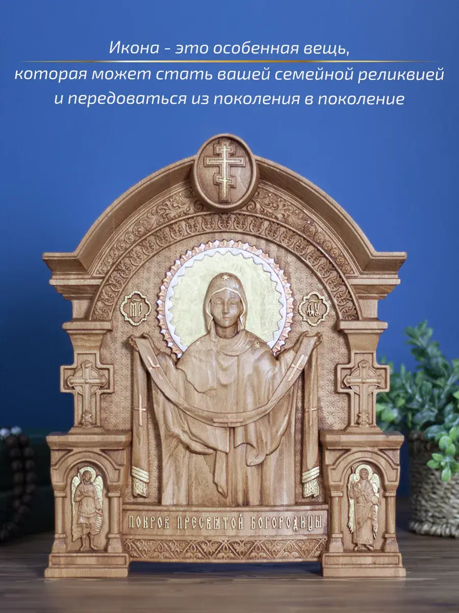Резная икона Покров Пресвятой Богородицы идеально подойдет для подарка любимым, родным и близким на любой случай жизни.