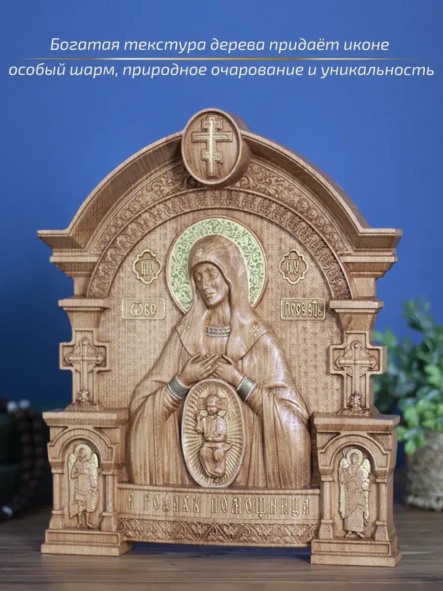 Резная икона Божией Матери Помощница в родах идеально подойдет для подарка любимым, родным и близким на любой случай жизни.