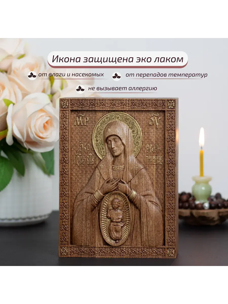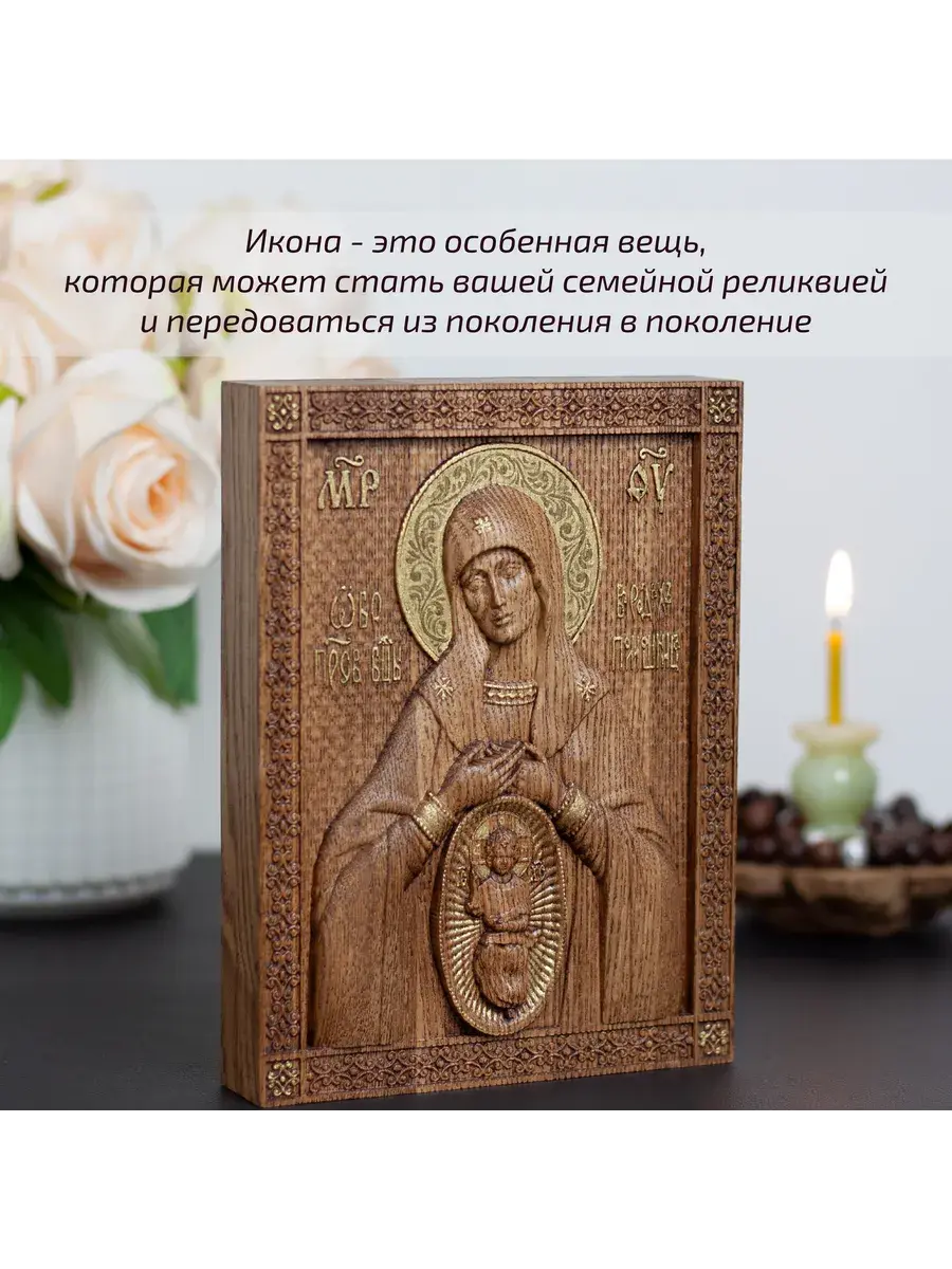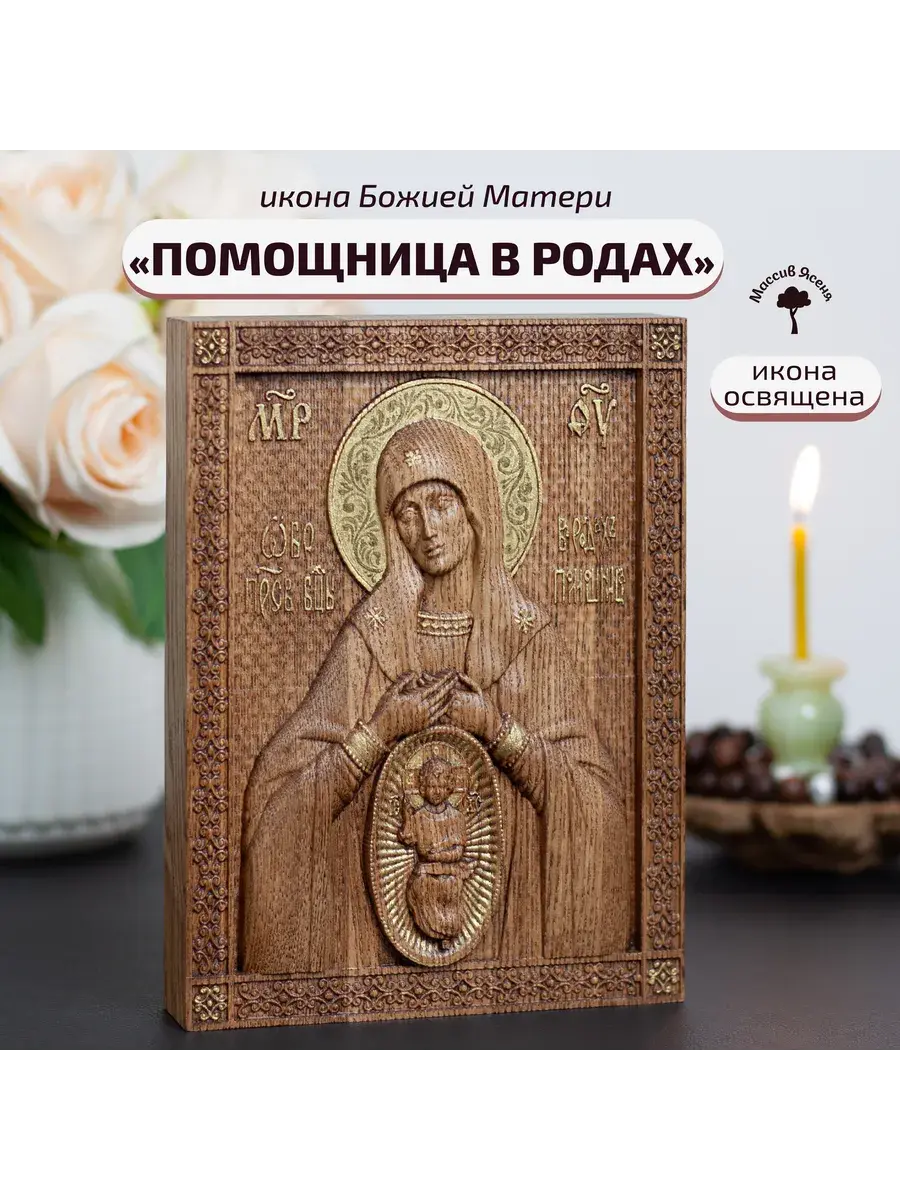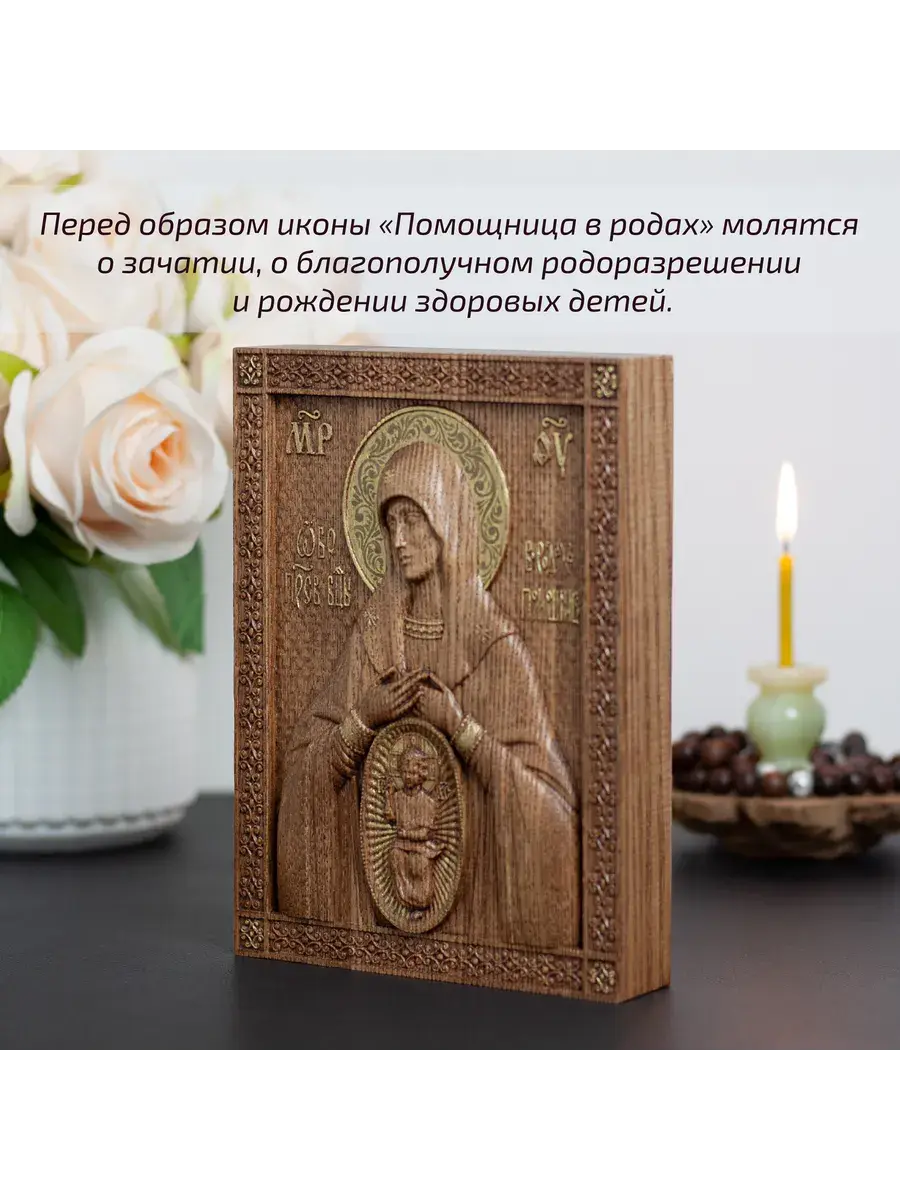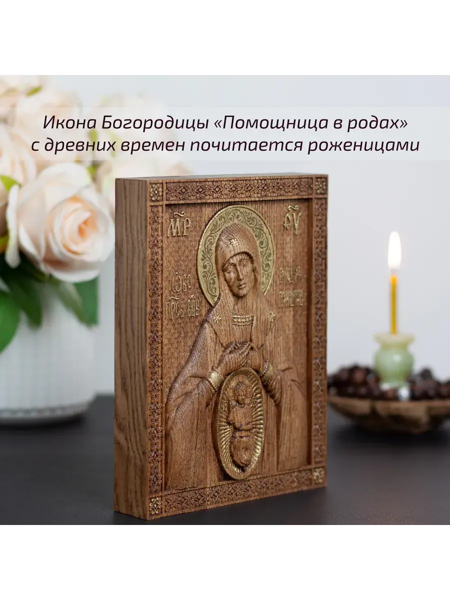 Резная икона Божией Матери Помощница в родах идеально подойдет для подарка любимым, родным и близким на любой случай жизни.