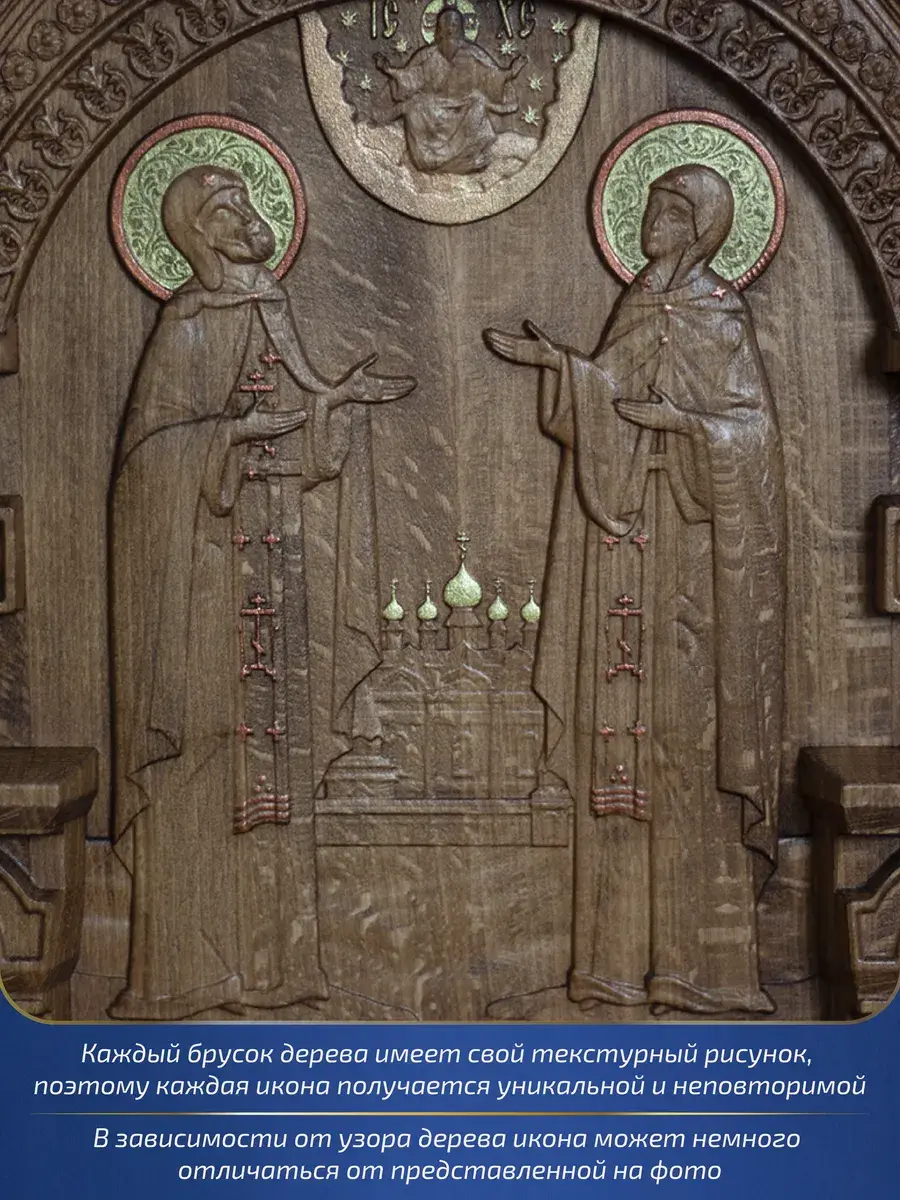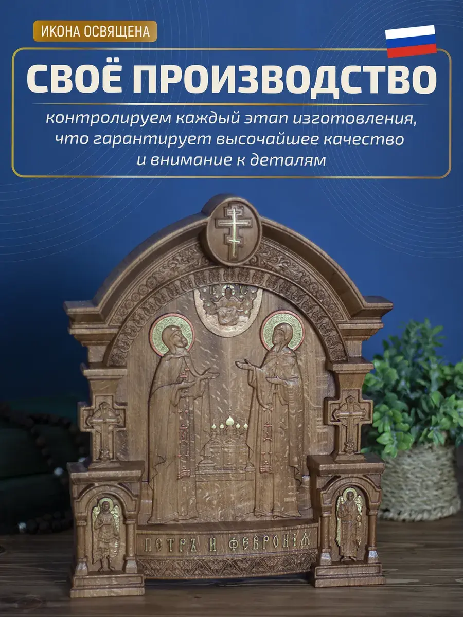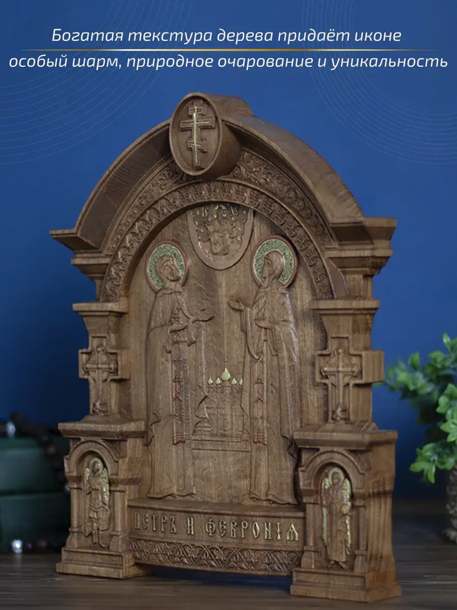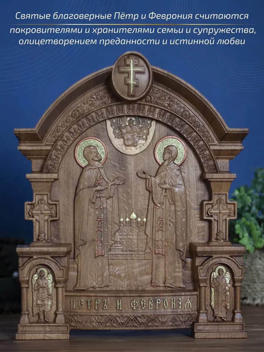 Резная икона «Петр и Феврония Муромские» идеально подойдет для подарка любимым, родным и близким на любой случай жизни.