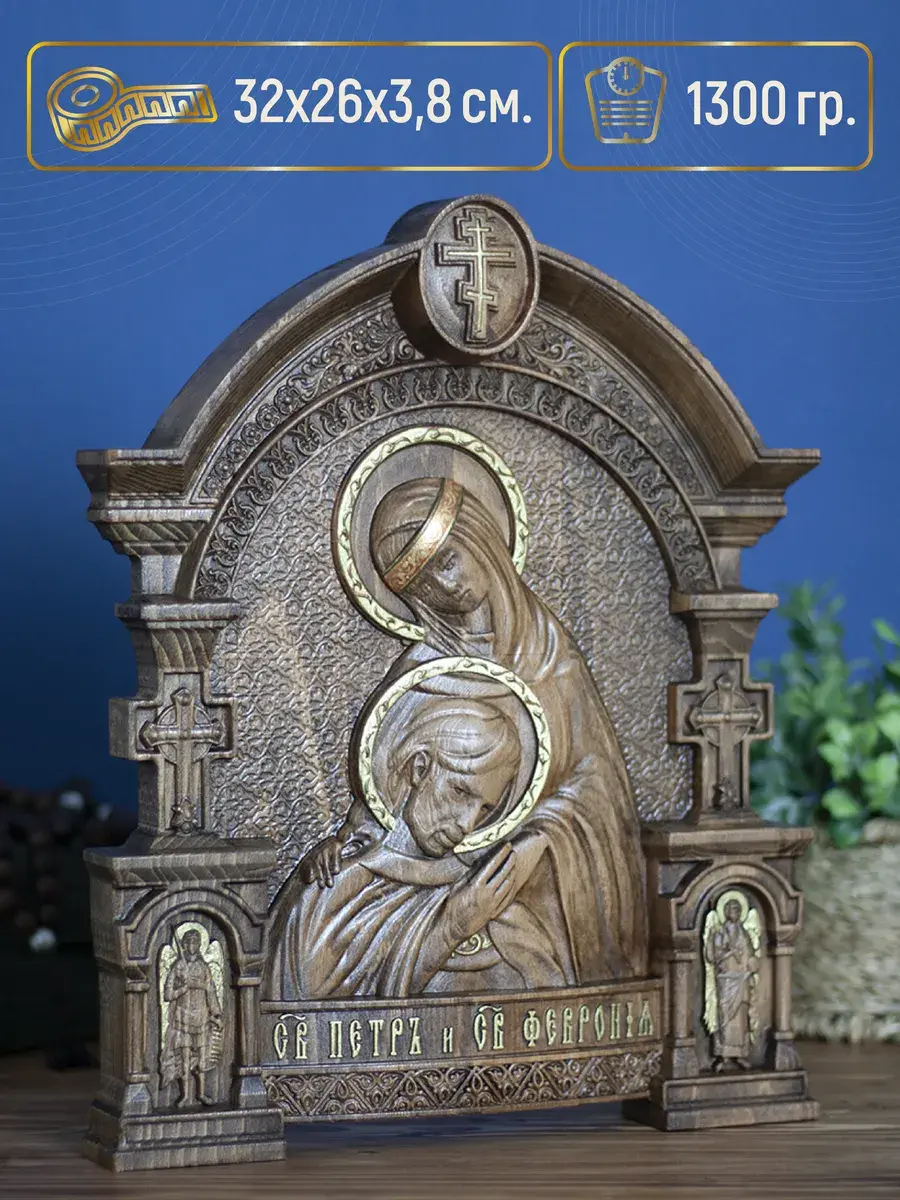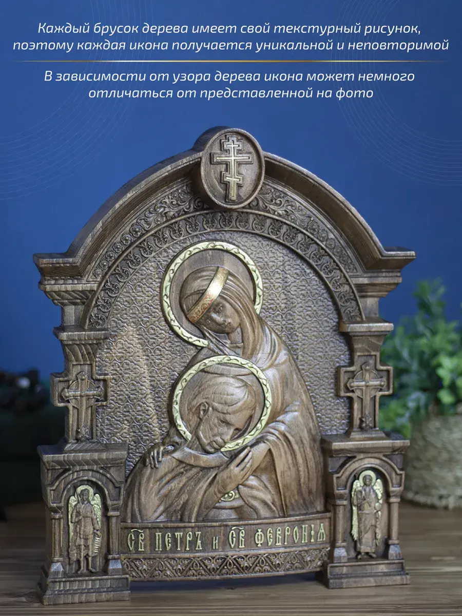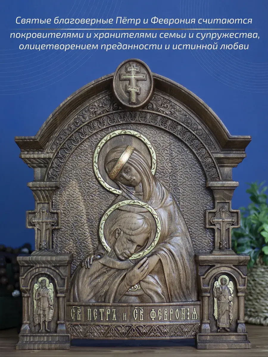 Резная икона «Петр и Февронья Муромские» идеально подойдет для подарка любимым, родным и близким на любой случай жизни.