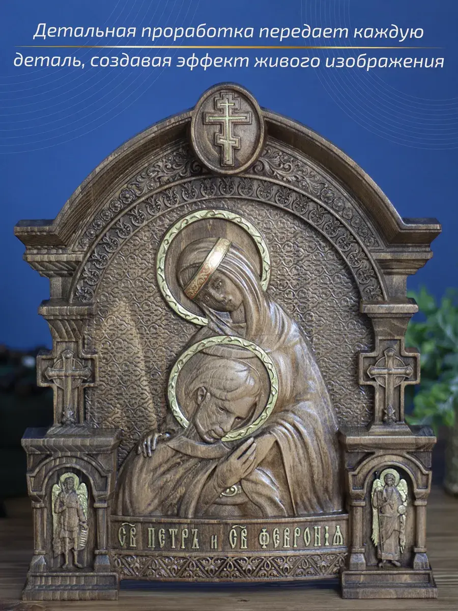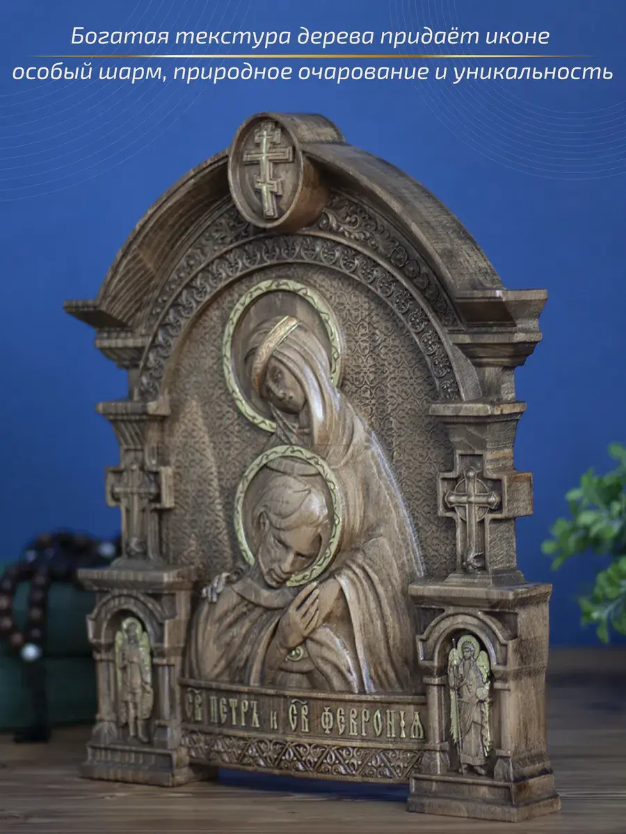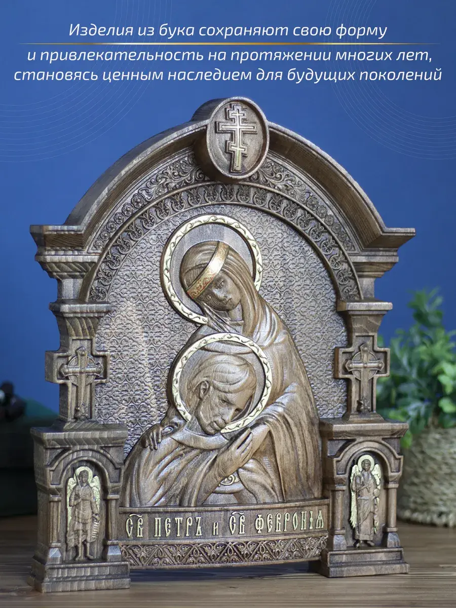 Резная икона «Петр и Февронья Муромские» идеально подойдет для подарка любимым, родным и близким на любой случай жизни.