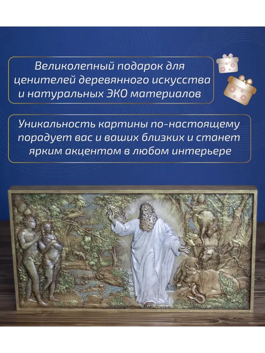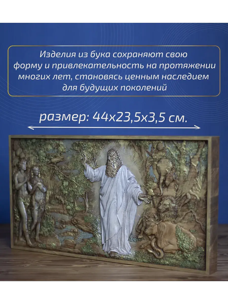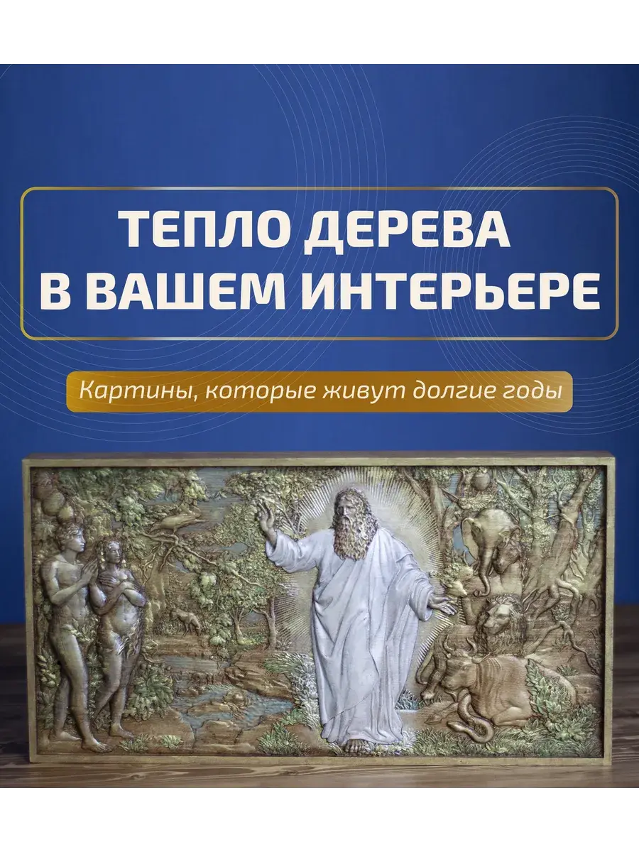 Картина изготовлена из клееного массива бука, что обеспечивает её прочность и долговечность. Объемная 3D резьба, искусно выполненная на фрезерном ЧПУ станке, создает эффект глубины и реалистичности, приковывая взгляд к каждой детали.