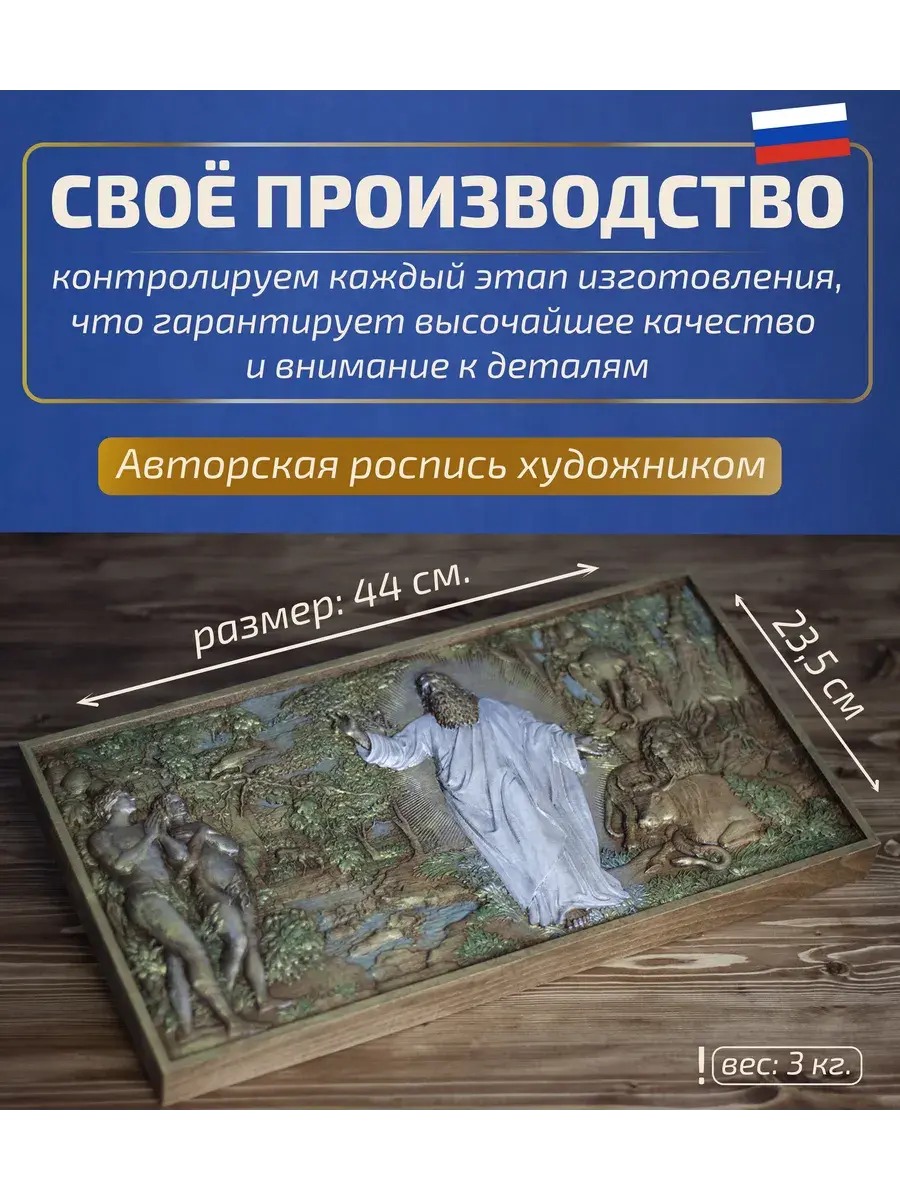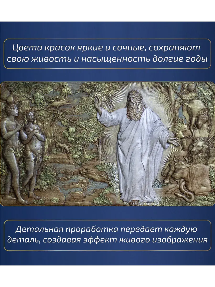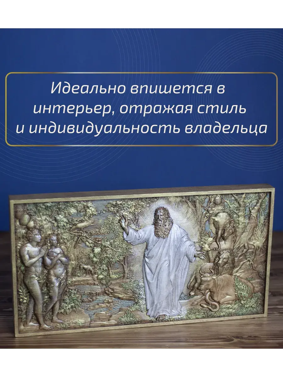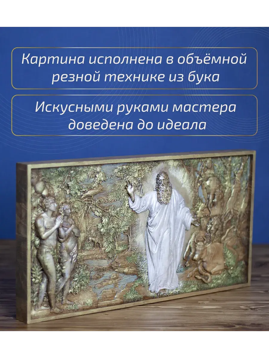 Картина изготовлена из клееного массива бука, что обеспечивает её прочность и долговечность. Объемная 3D резьба, искусно выполненная на фрезерном ЧПУ станке, создает эффект глубины и реалистичности, приковывая взгляд к каждой детали.