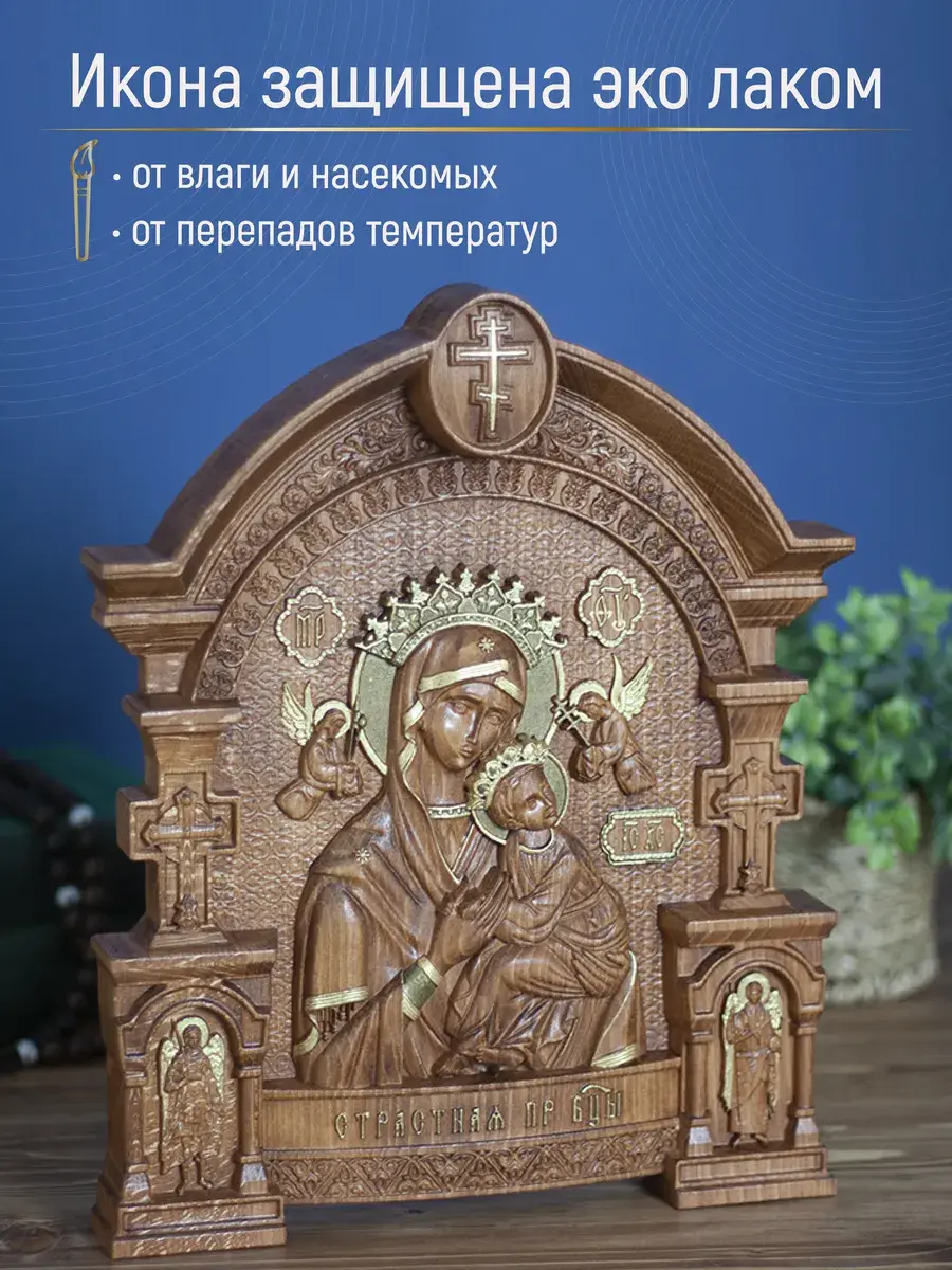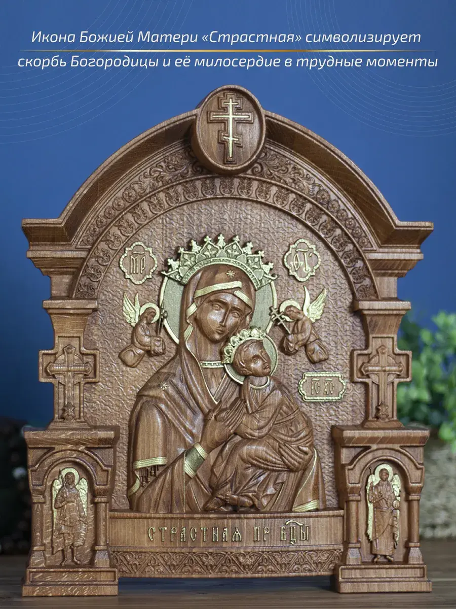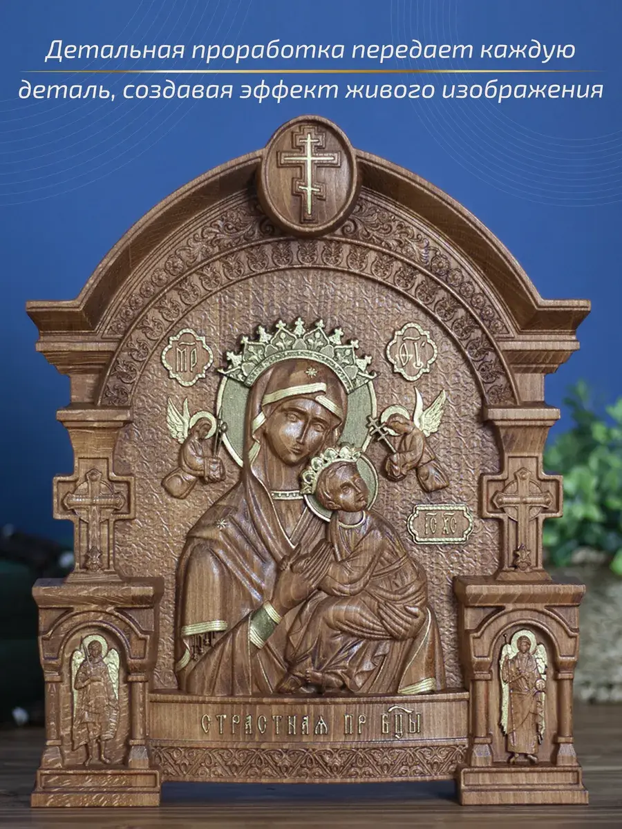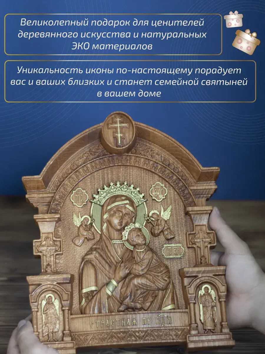 Резная икона Божией Матери Страстная идеально подойдет для подарка любимым, родным и близким на любой случай жизни.