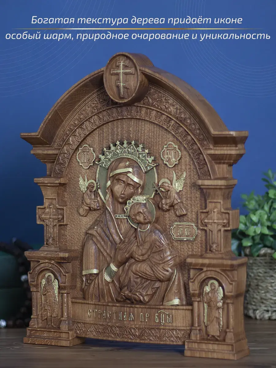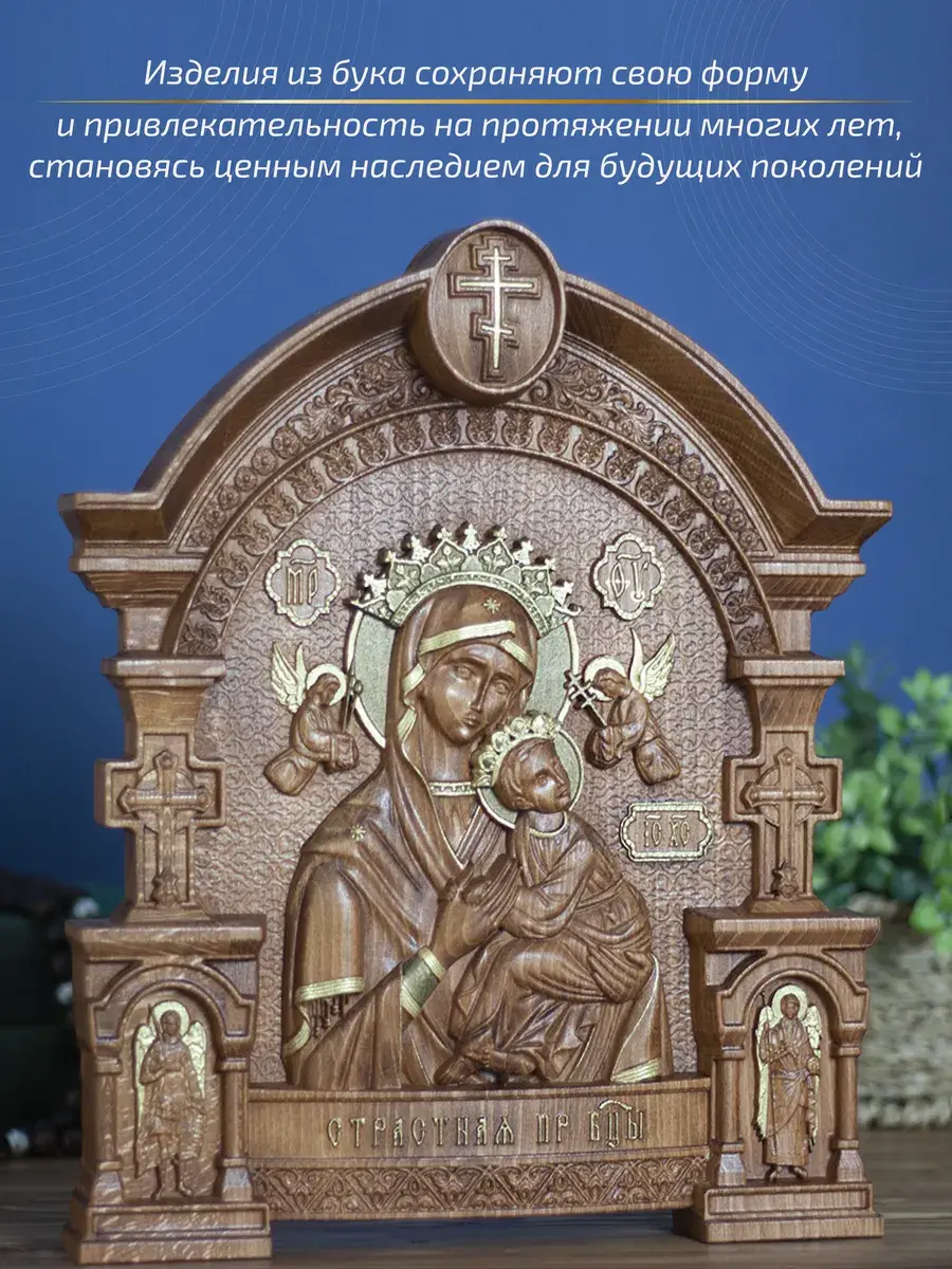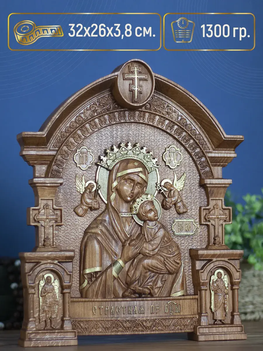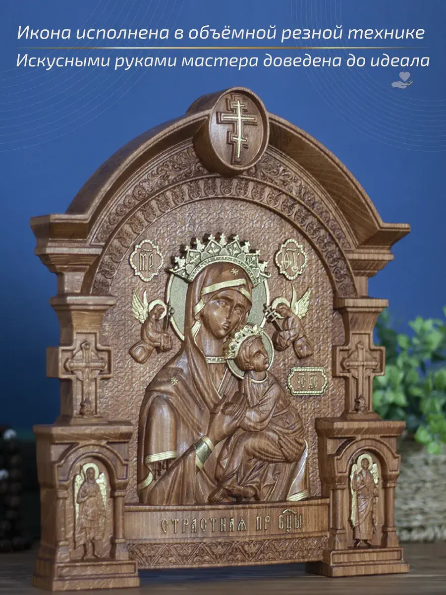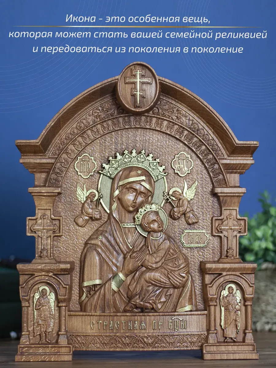 Резная икона Божией Матери Страстная идеально подойдет для подарка любимым, родным и близким на любой случай жизни.