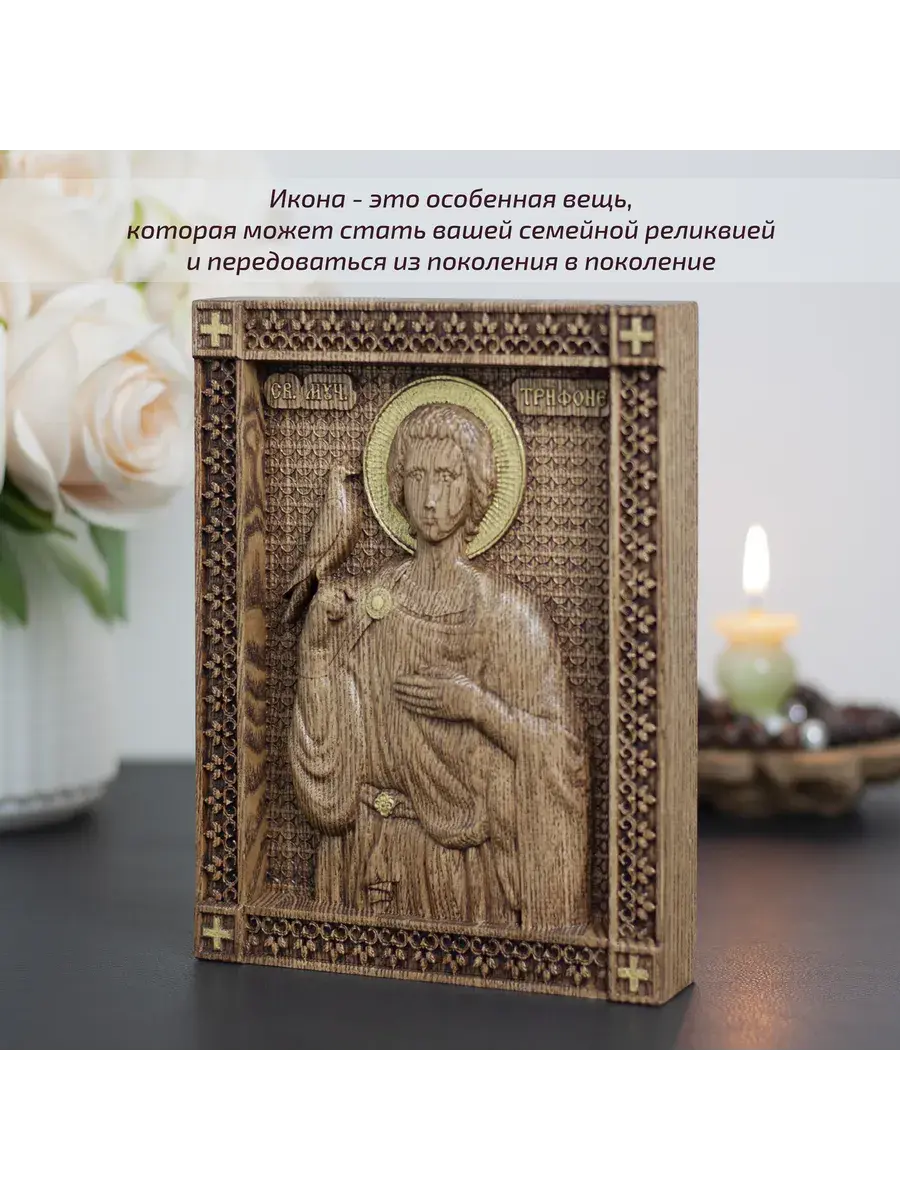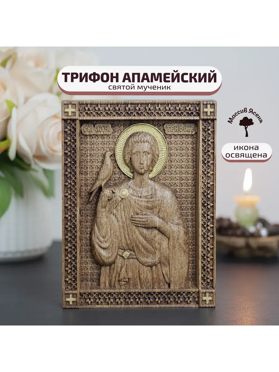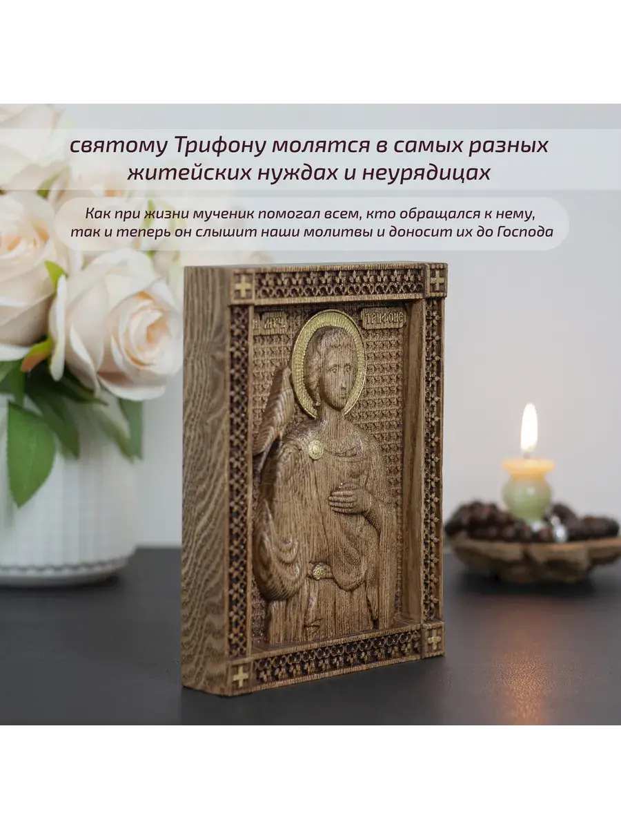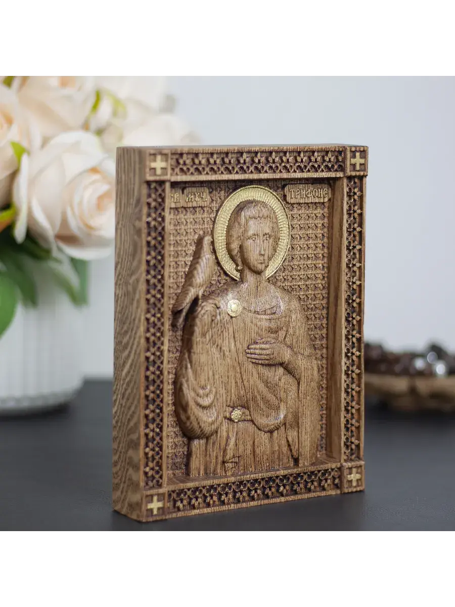 Резная икона «Святой Трифон» идеально подойдет для подарка любимым, родным и близким на любой случай жизни.