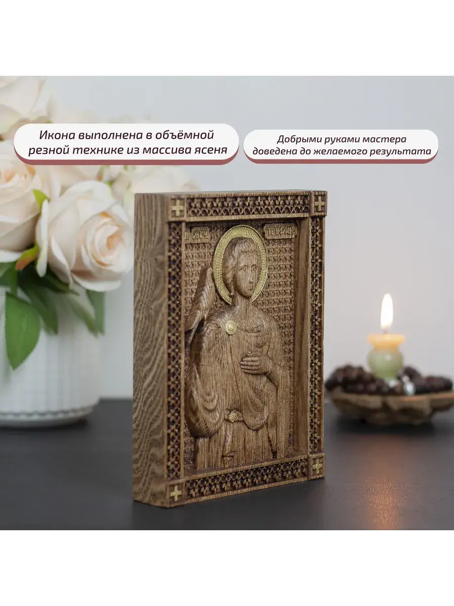 Икона изготовлена из натурального клееного массива ясеня высокого качества. Резная икона из дерева выполнена на фрезерном ЧПУ станке. Икона покрыта эко лаком, он защищает дерево от влаги и насекомых, перепадов температуры, а также не вызывает аллергию и безопасен для домашнего использования. Натуральность ценных пород дерева придаёт образу уникальную и неповторимую красоту, естественность, и самобытность. Для вашего удобства на обратной стороне иконы предусмотрена петля для размещения иконы на стене.