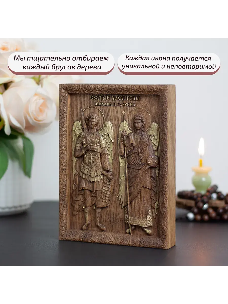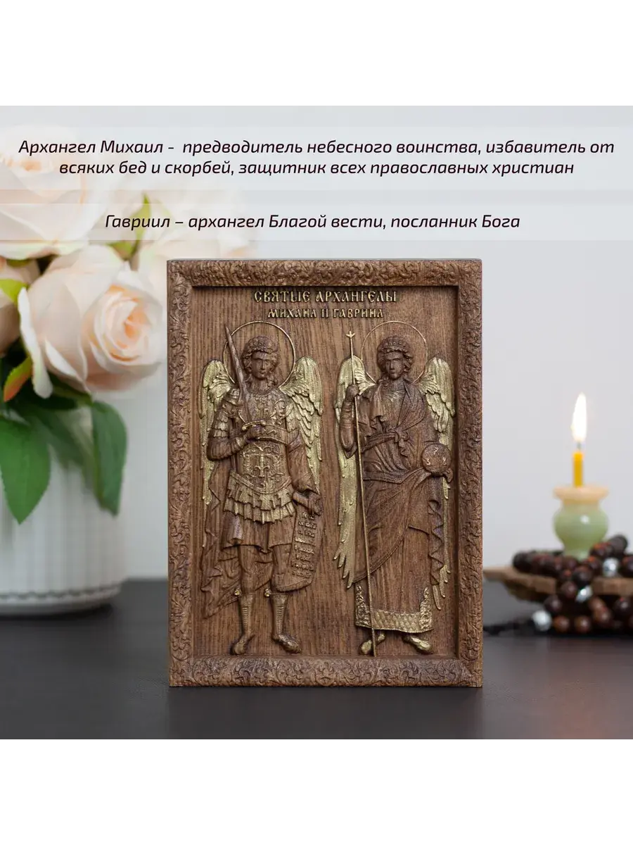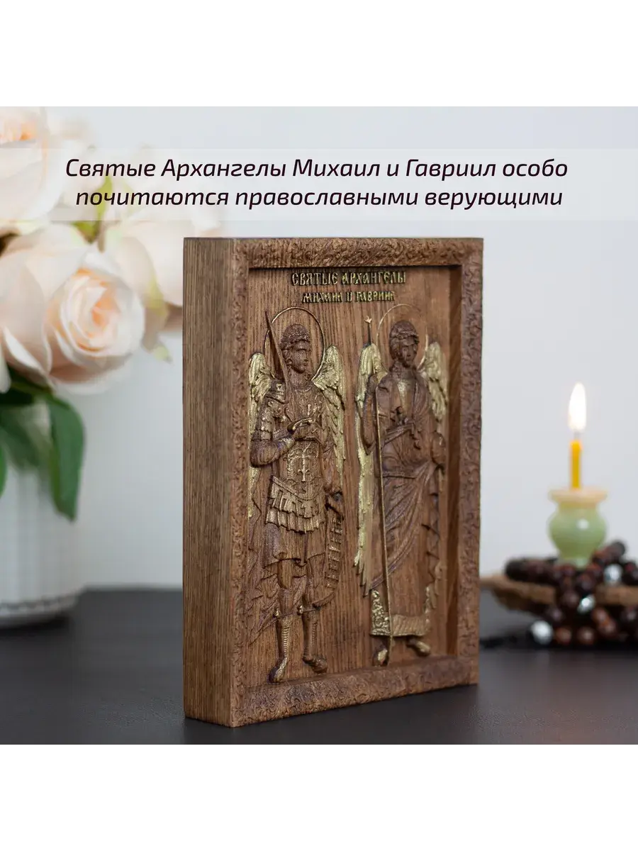 Резная икона Архангелы Михаил и Гавриил идеально подойдет для подарка любимым, родным и близким на любой случай жизни.