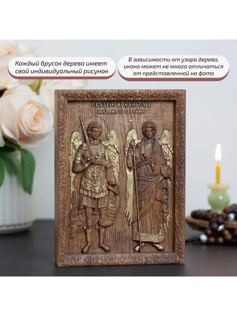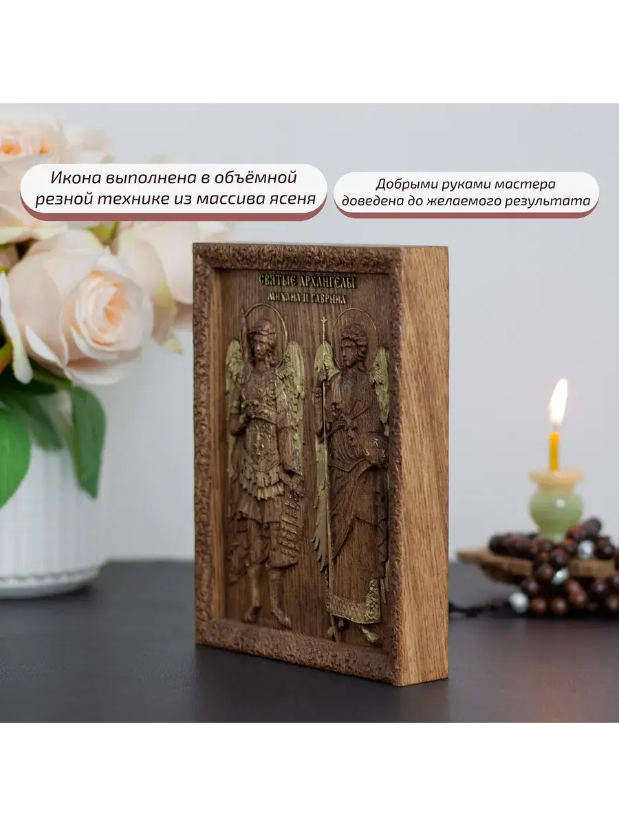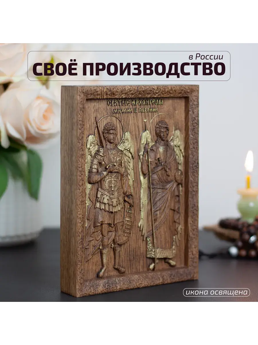 Резная икона Архангелы Михаил и Гавриил идеально подойдет для подарка любимым, родным и близким на любой случай жизни.