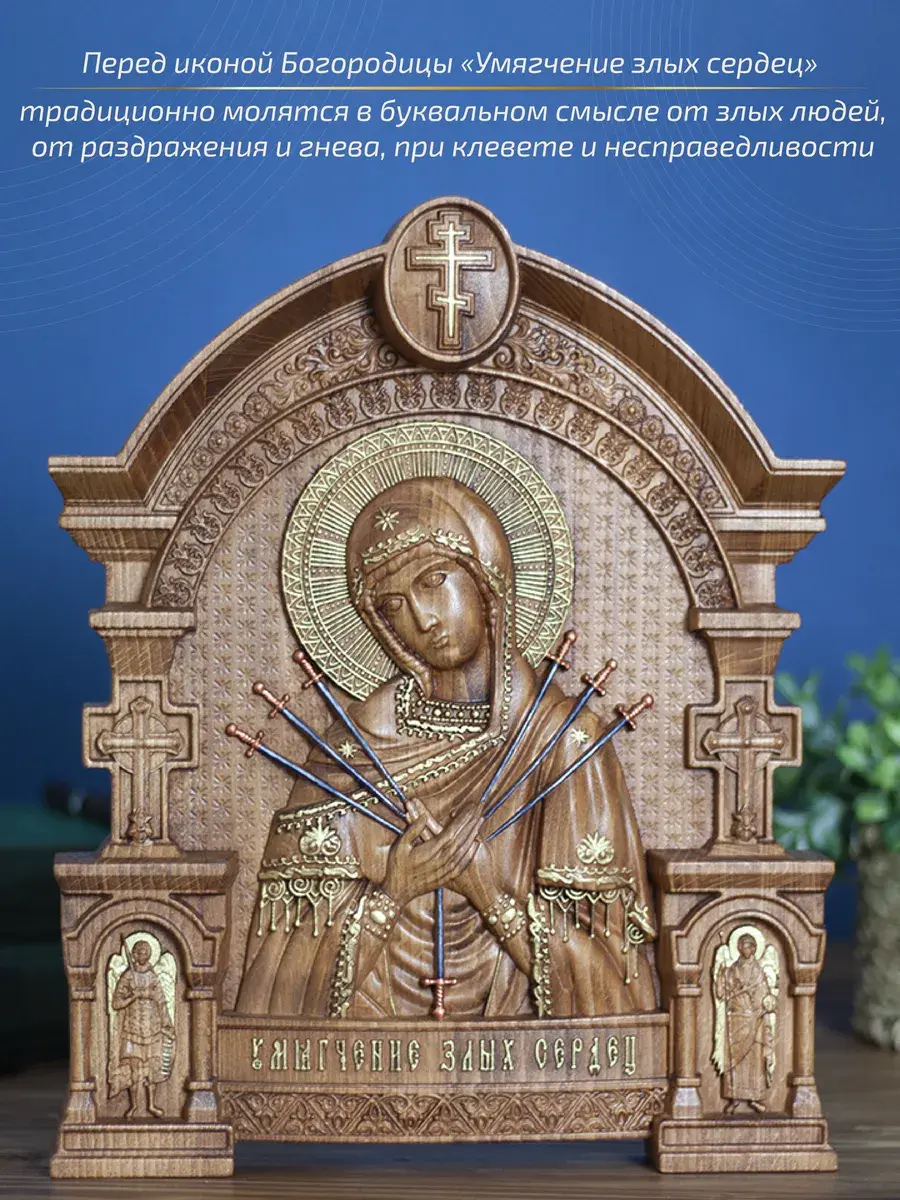 Резная икона «Умягчение злых сердец» идеально подойдет для подарка любимым, родным и близким на любой случай жизни.