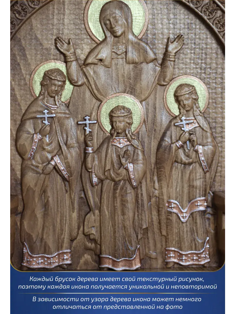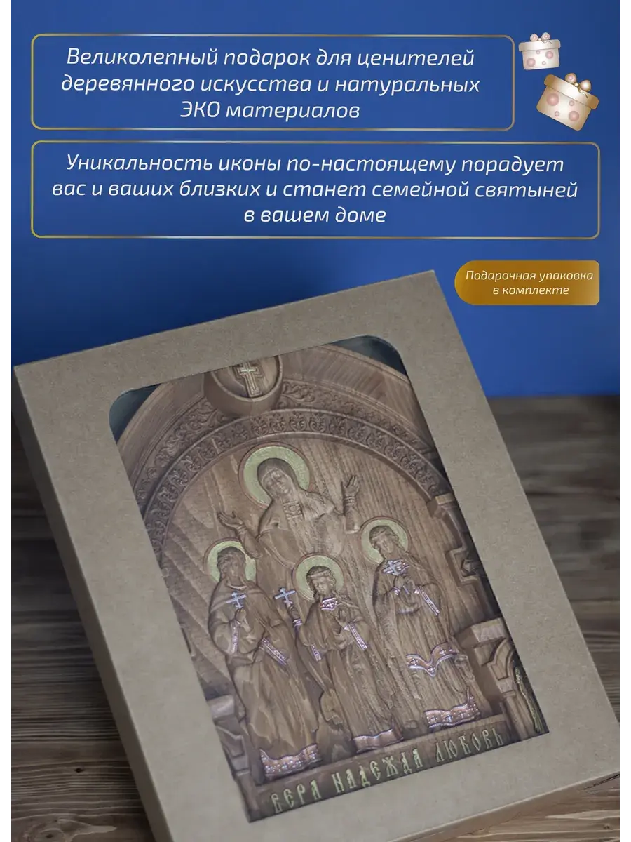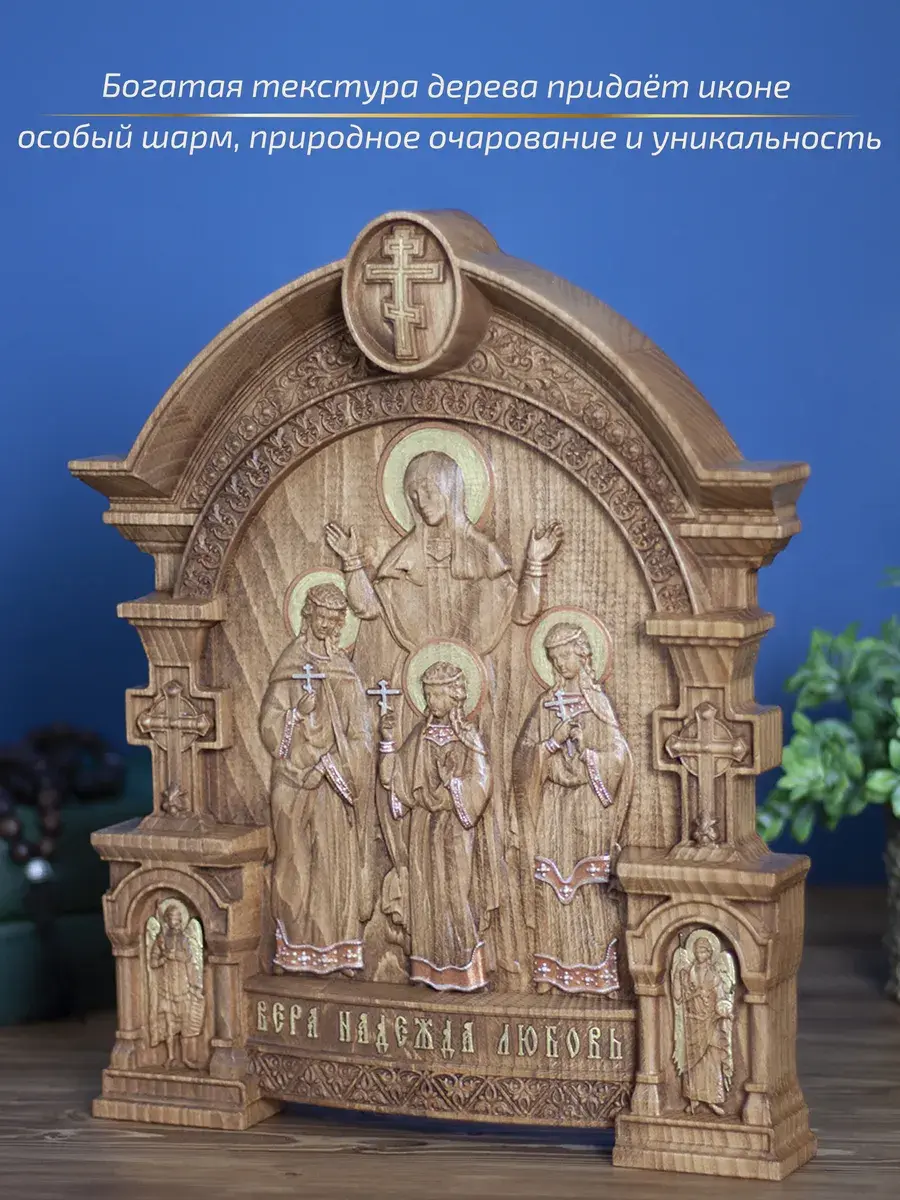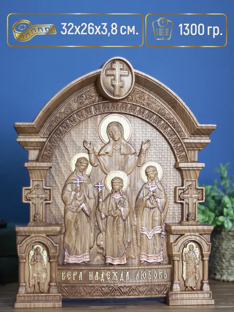 Резная икона Вера, Надежда, Любовь и мать их София идеально подойдет для подарка любимым, родным и близким на любой случай жизни.