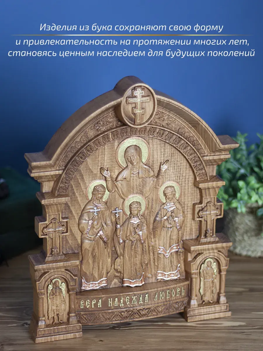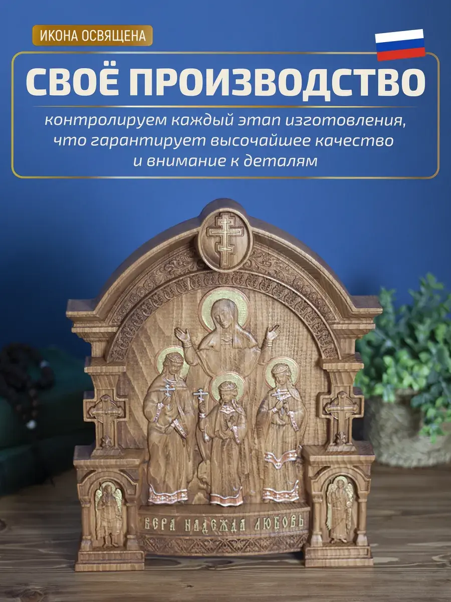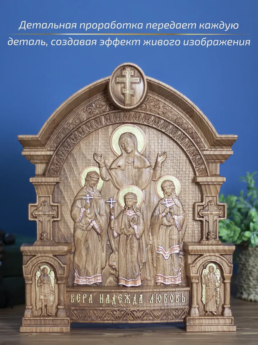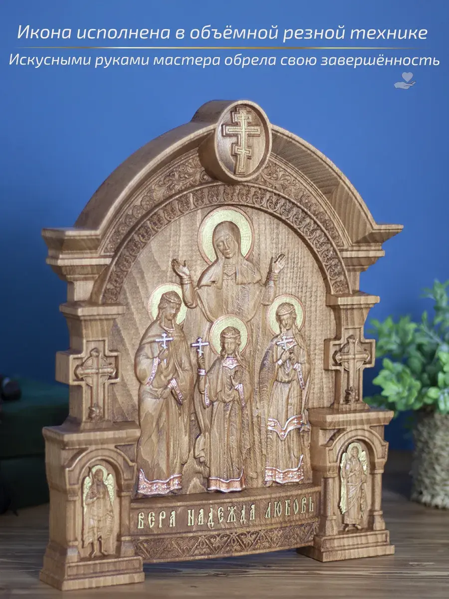 Резная икона Вера, Надежда, Любовь и мать их София идеально подойдет для подарка любимым, родным и близким на любой случай жизни.