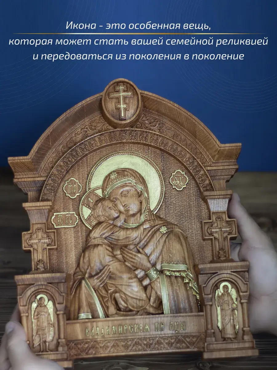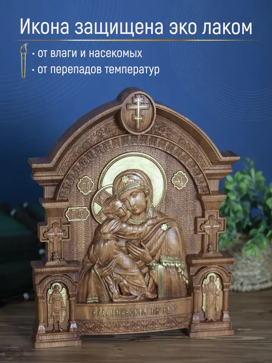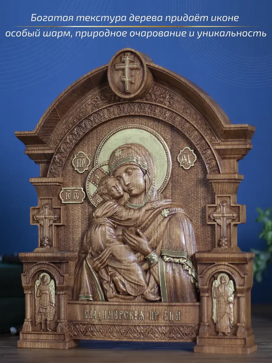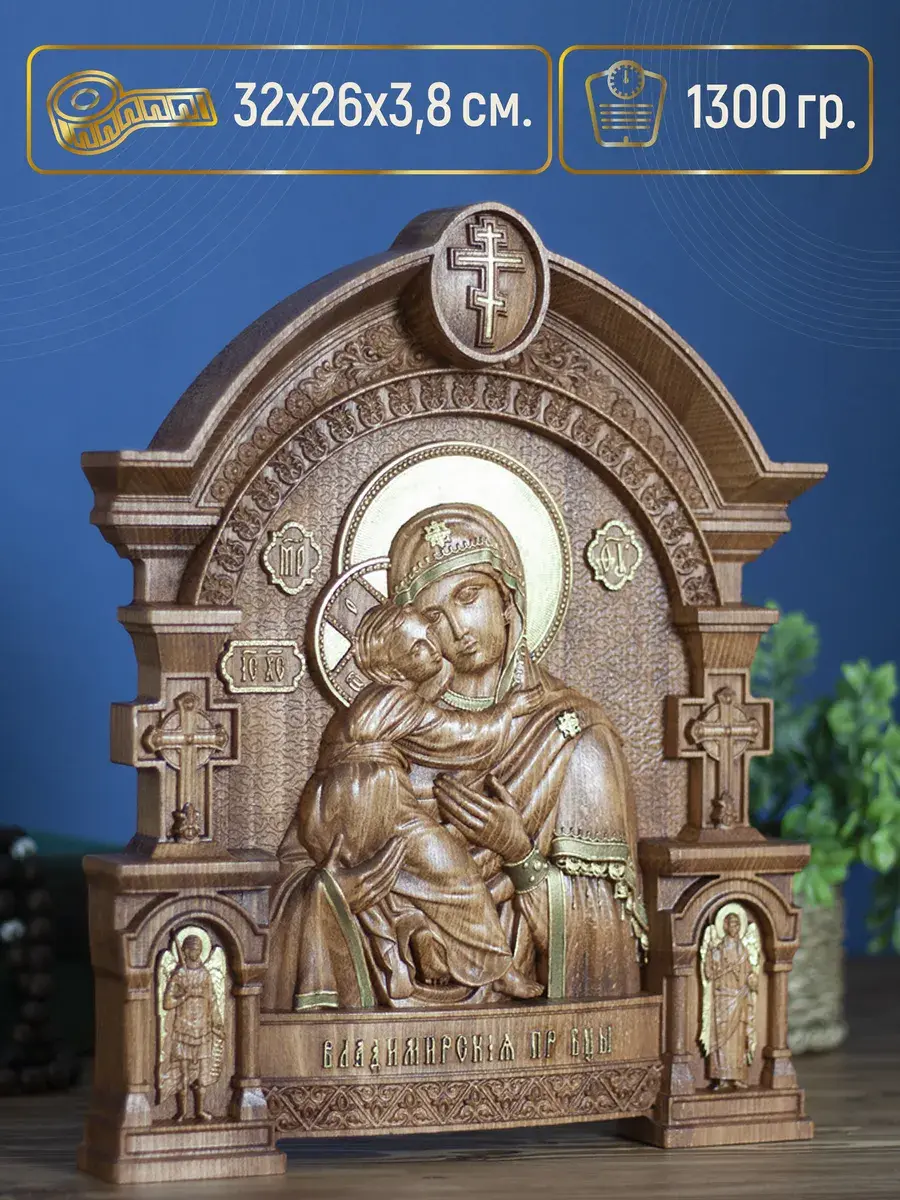 Резная икона Богородицы "Владимирская" идеально подойдет для подарка любимым, родным и близким на любой случай жизни.