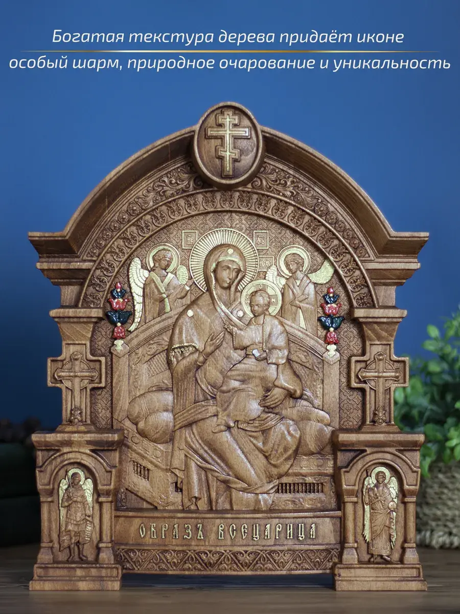 Резная икона «Богородица Всецарица» станет душевным и значимым подарком для родных и близких по любому случаю. Подарив такой образ, вы дарите не только символ веры и поддержки, но и частицу традиций, заботы и искренней любви. Пусть этот святой образ всегда наполнит ваш дом светом, теплом и благодатью, а молитвы перед ним принесут утешение, исцеление и надежду на лучшее.